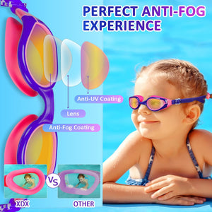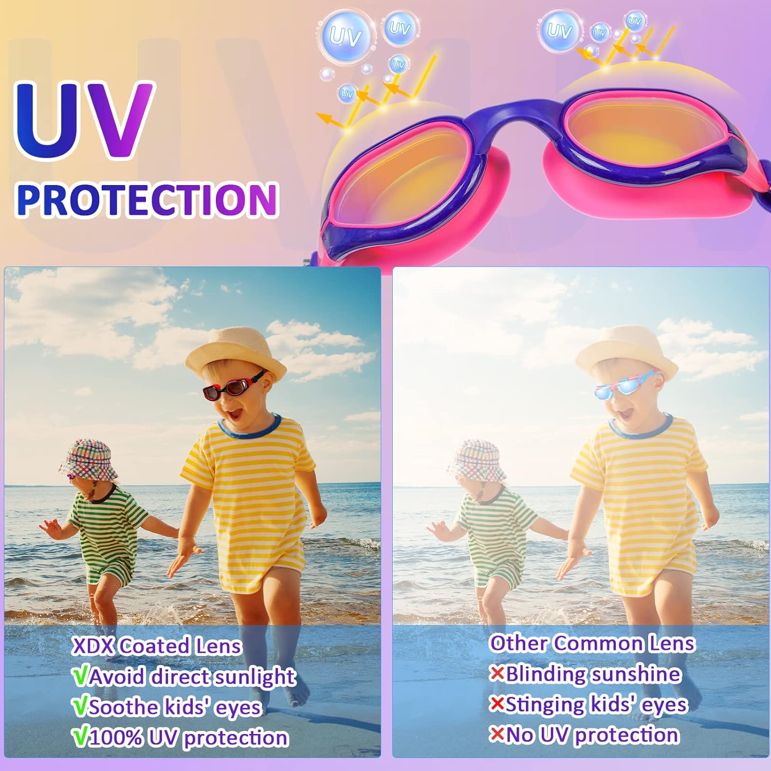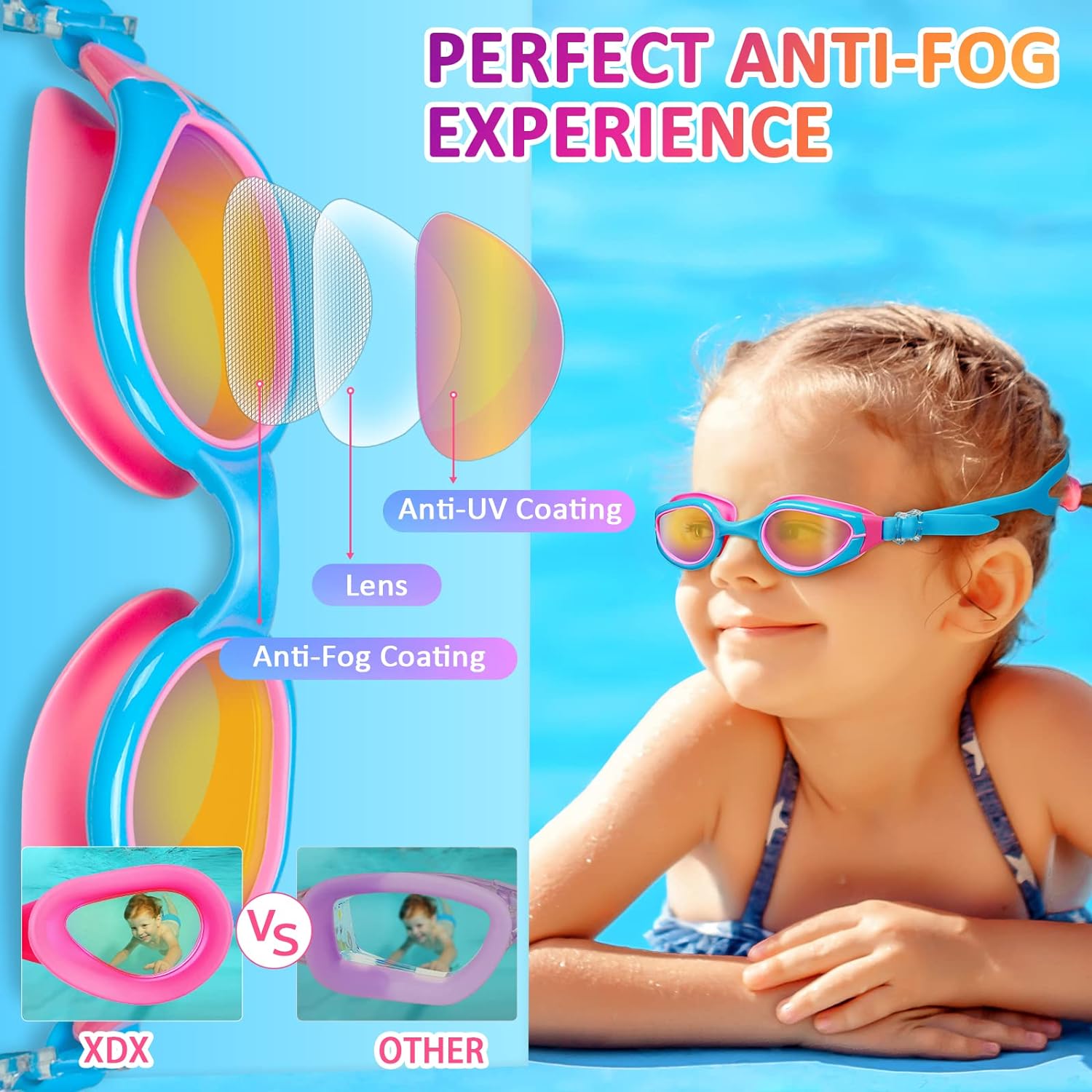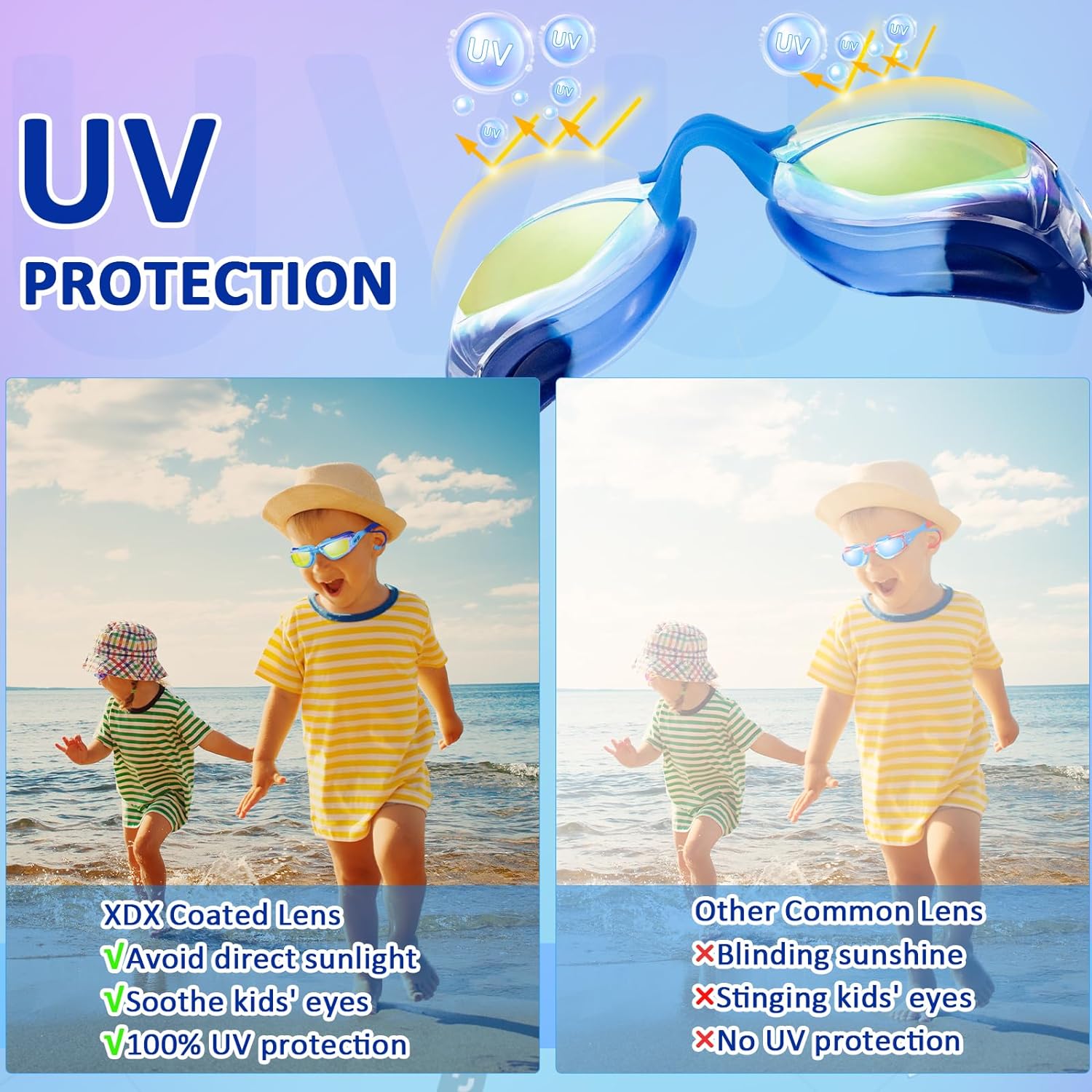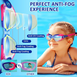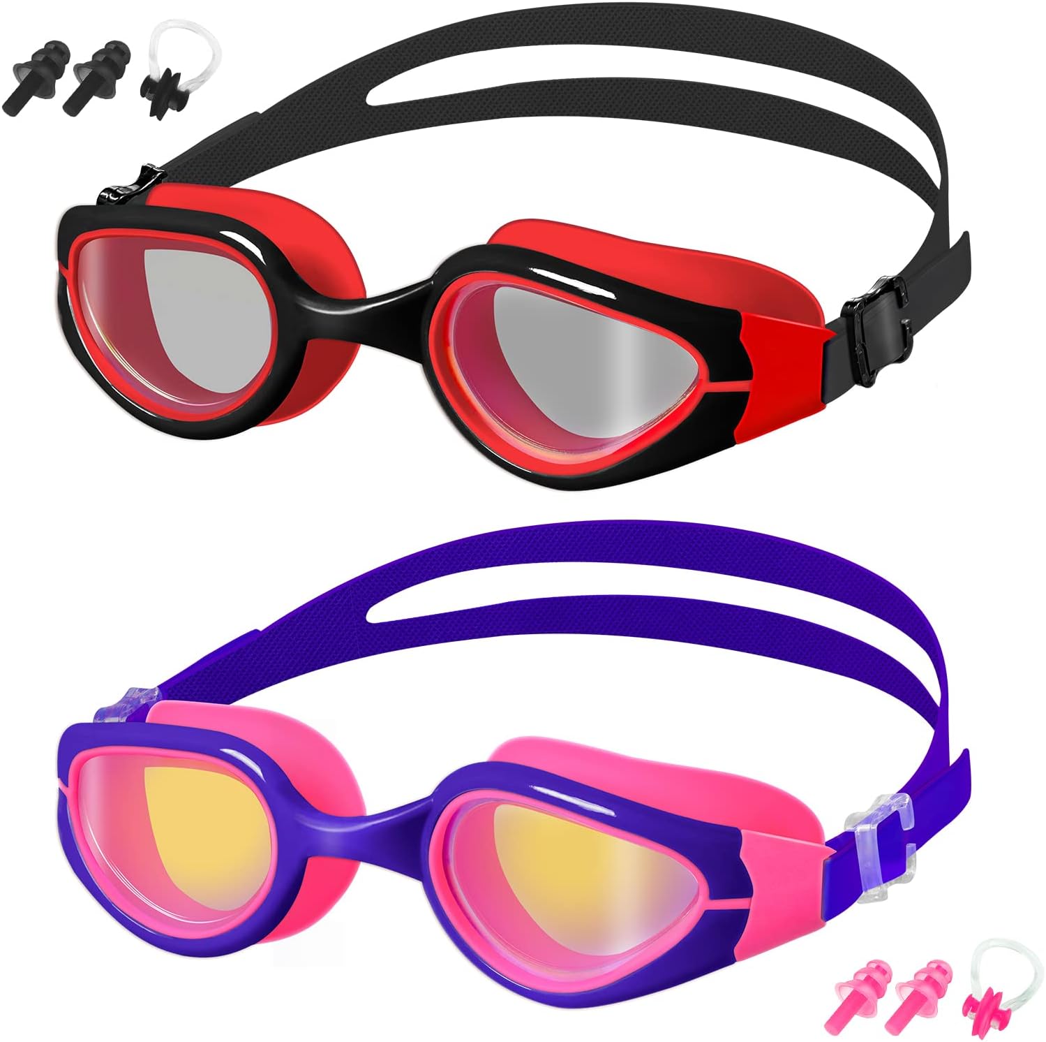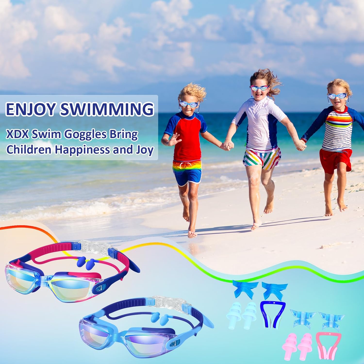 XDX Kids Swim Goggles, 2 Pack Kids Goggles With UV Protection, Anti Fog No Leaking Swimming Goggles for Boys Girls Teens 4-14