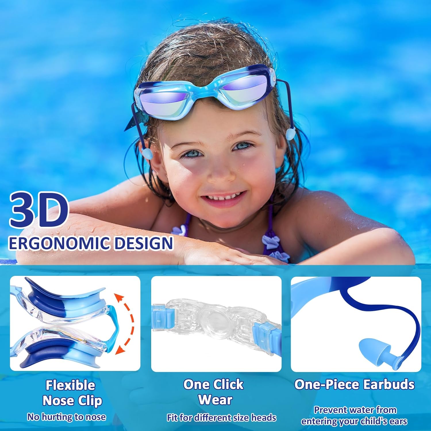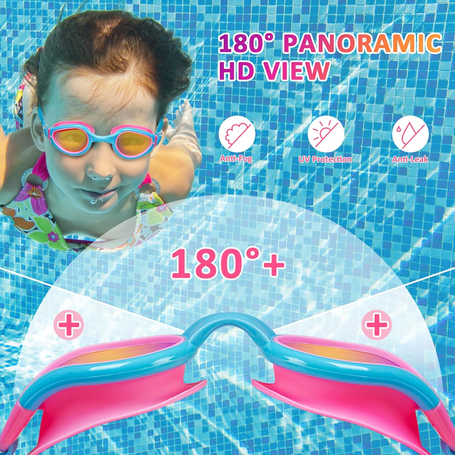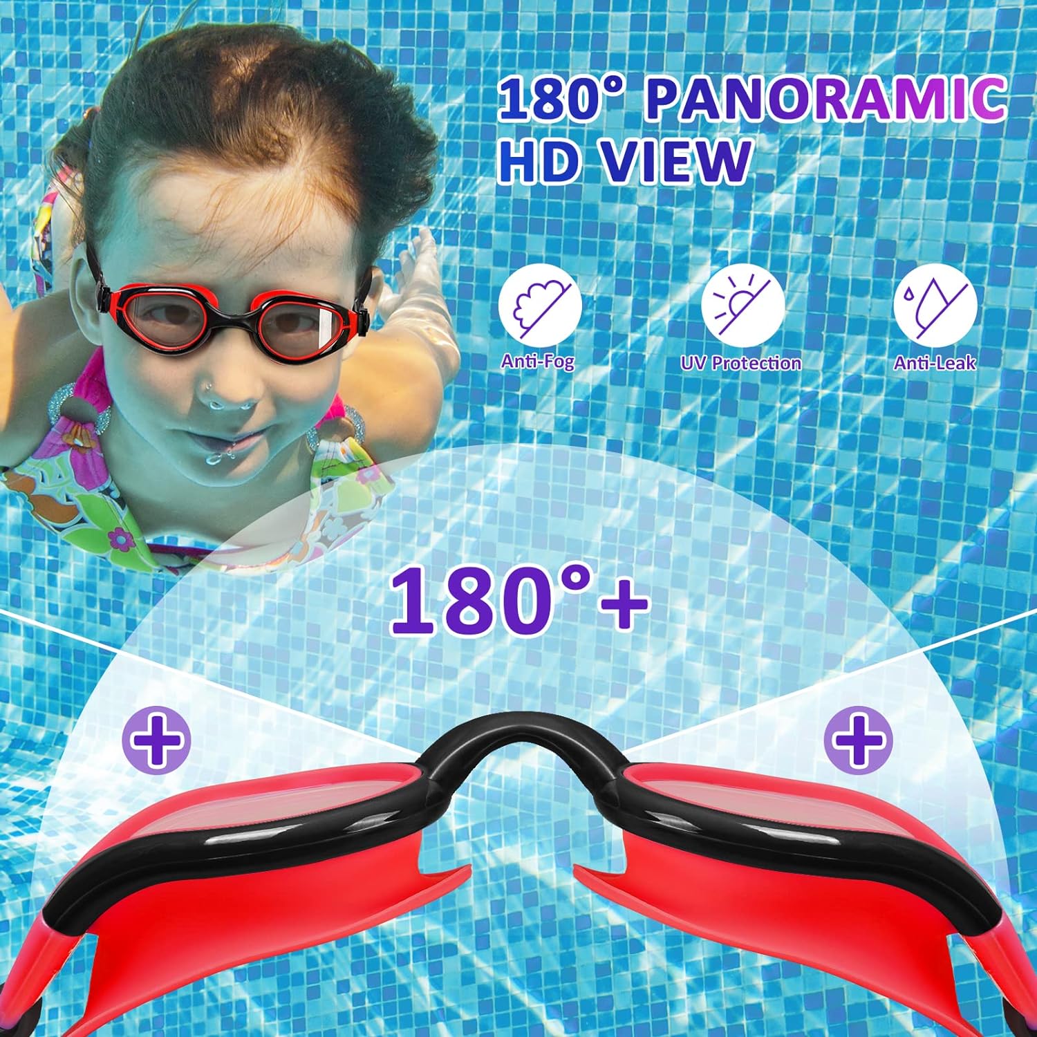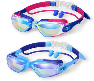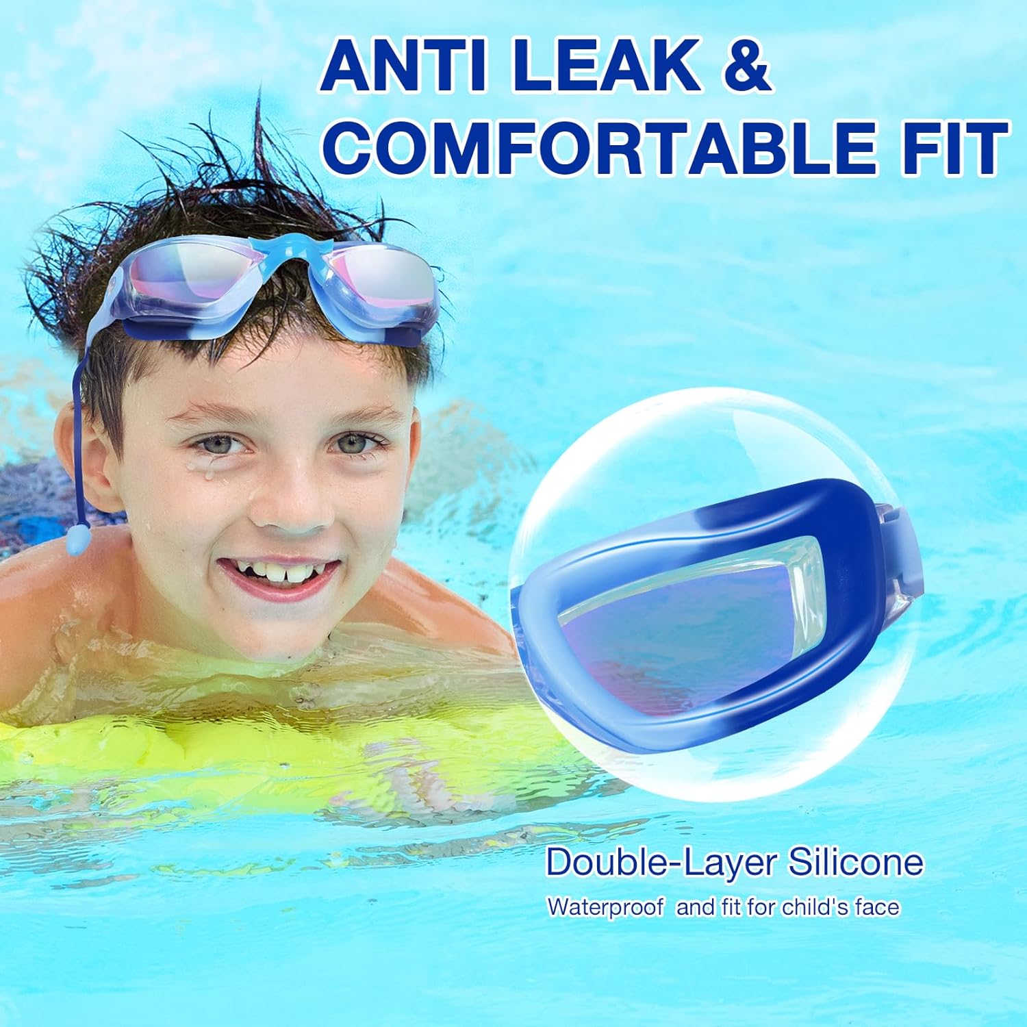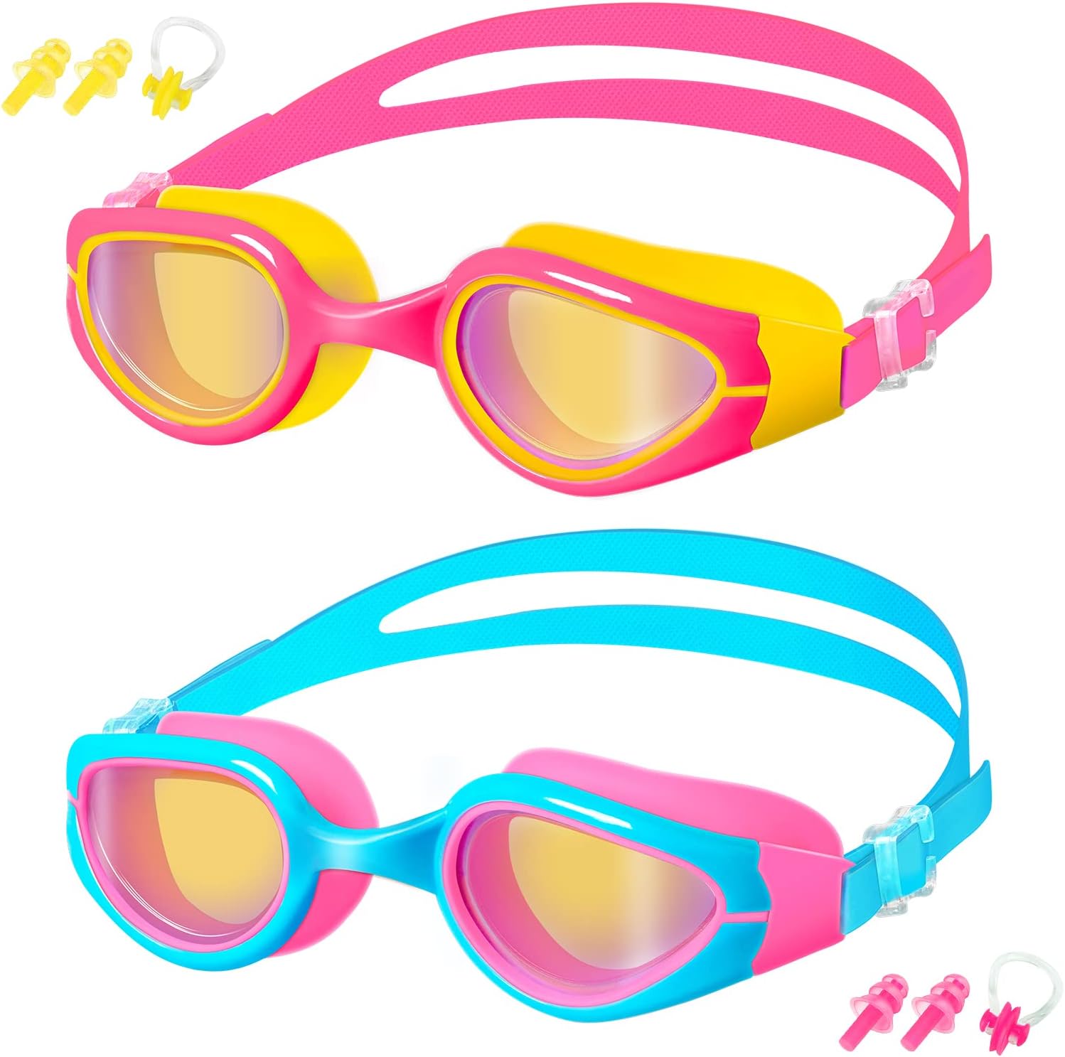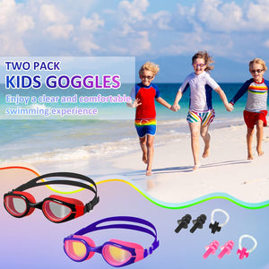 XDX Kids Swim Goggles, 2 Pack Kids Goggles With UV Protection, Anti Fog No Leaking Swimming Goggles for Boys Girls Teens 4-14