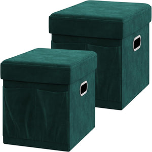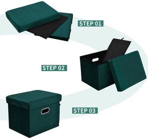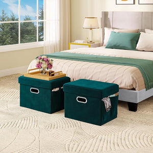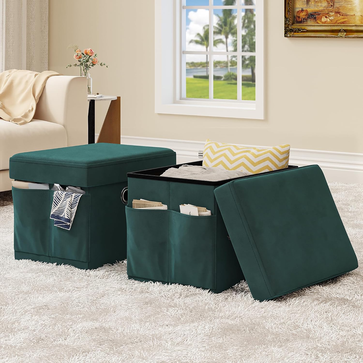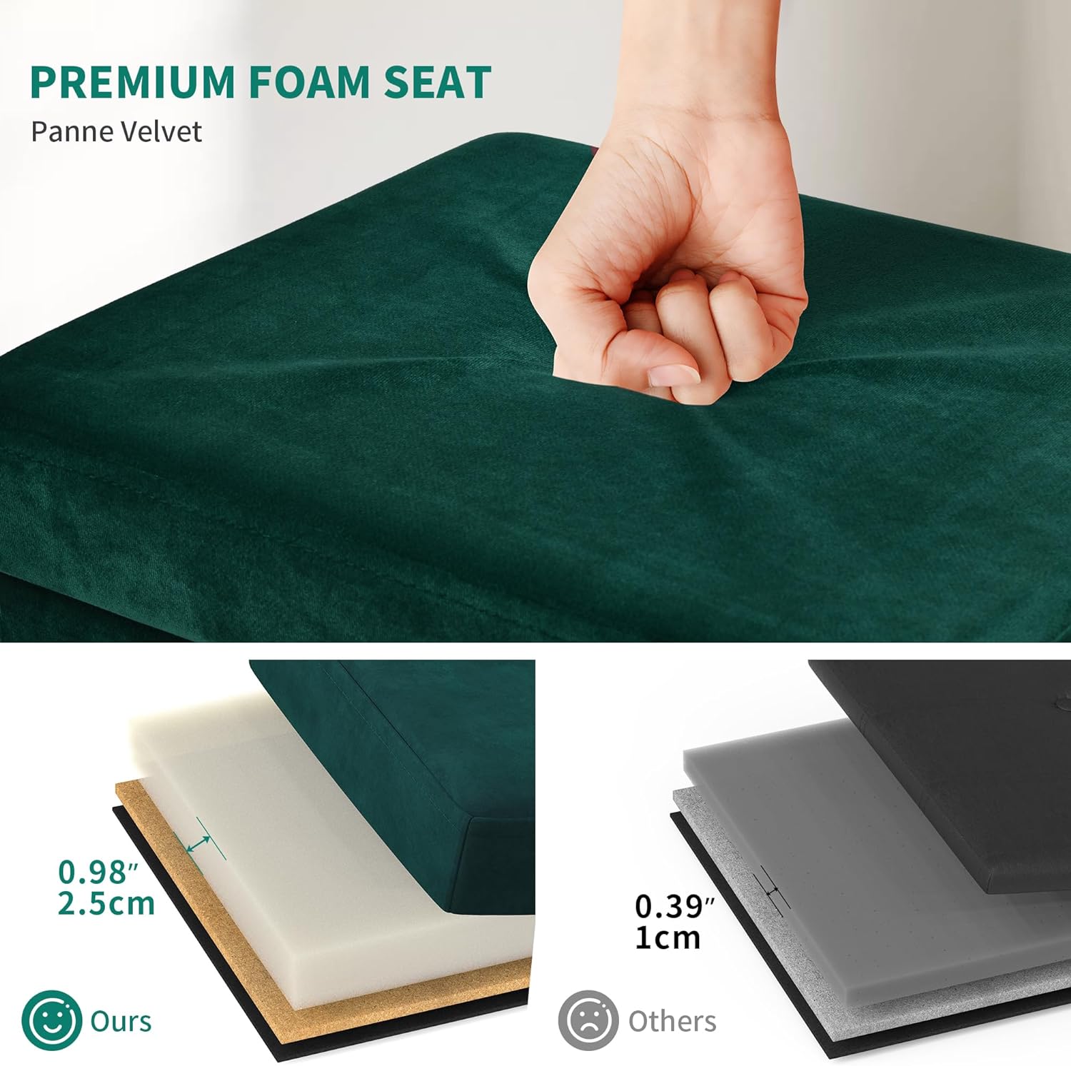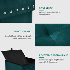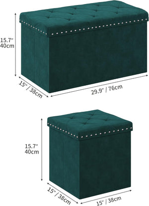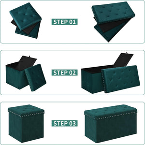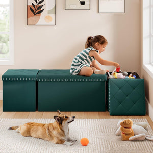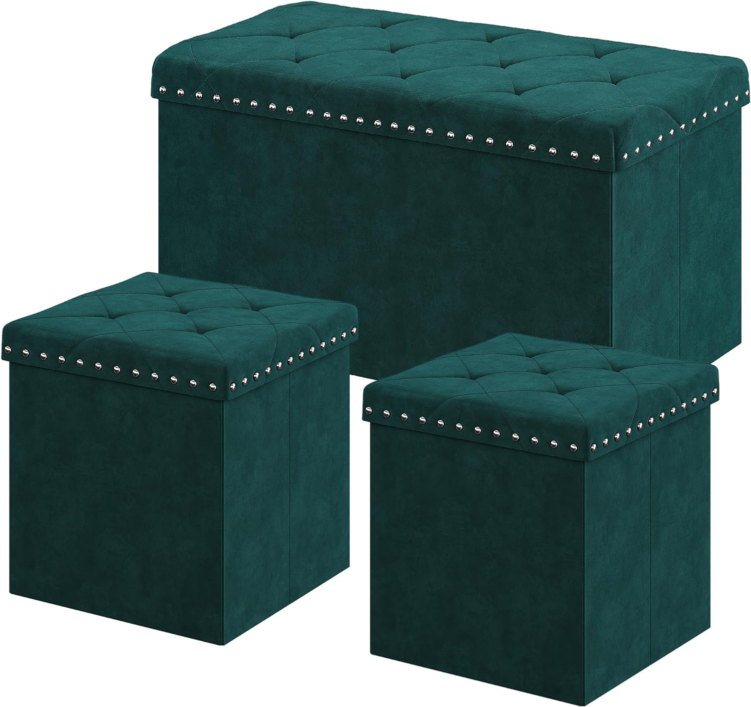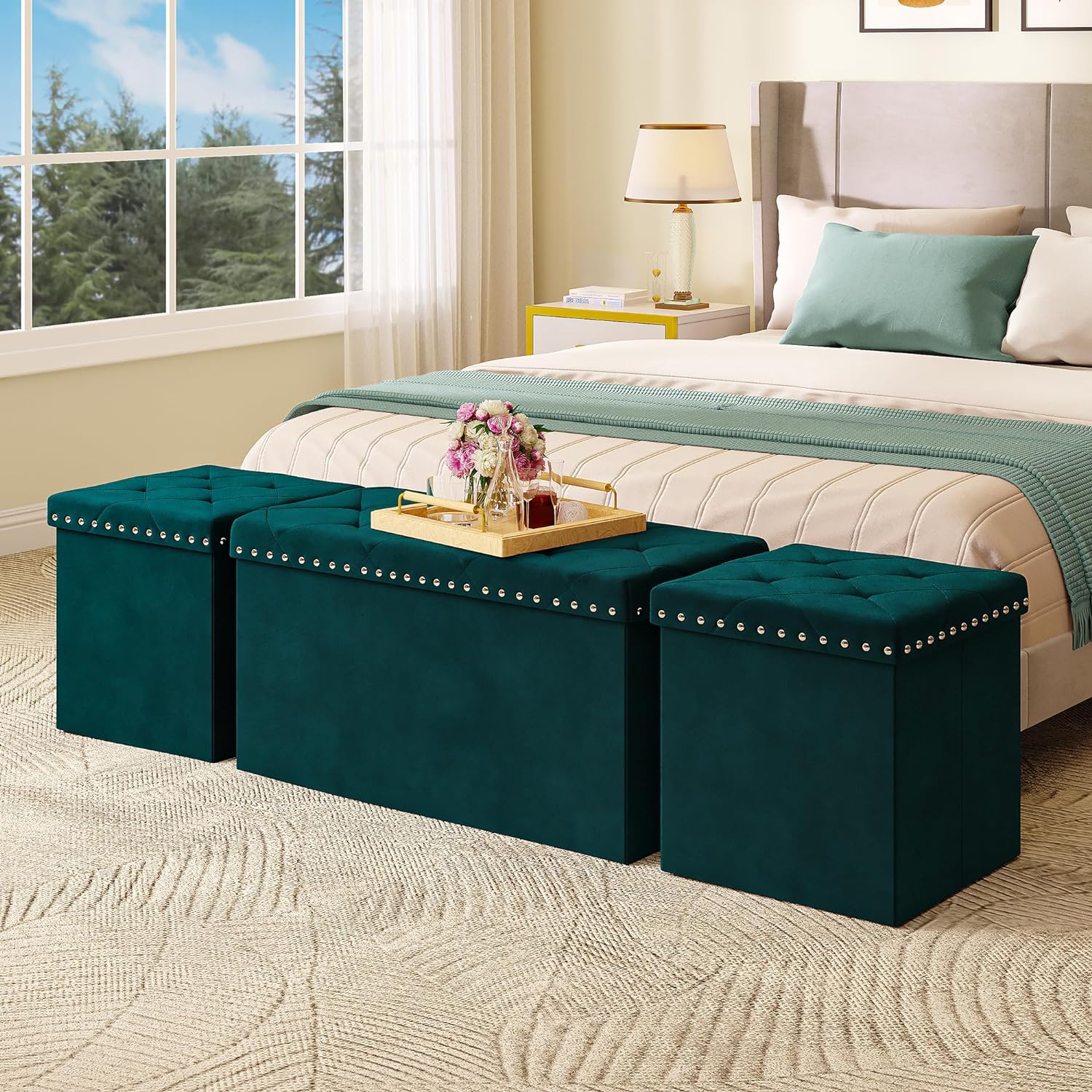 YITAHOME Velvet Tufted Storage Ottoman Bench with stylish rivets,for Bedroom Living Room Dressing Room for Multipurpose use (Set of 3, Green)