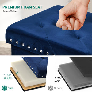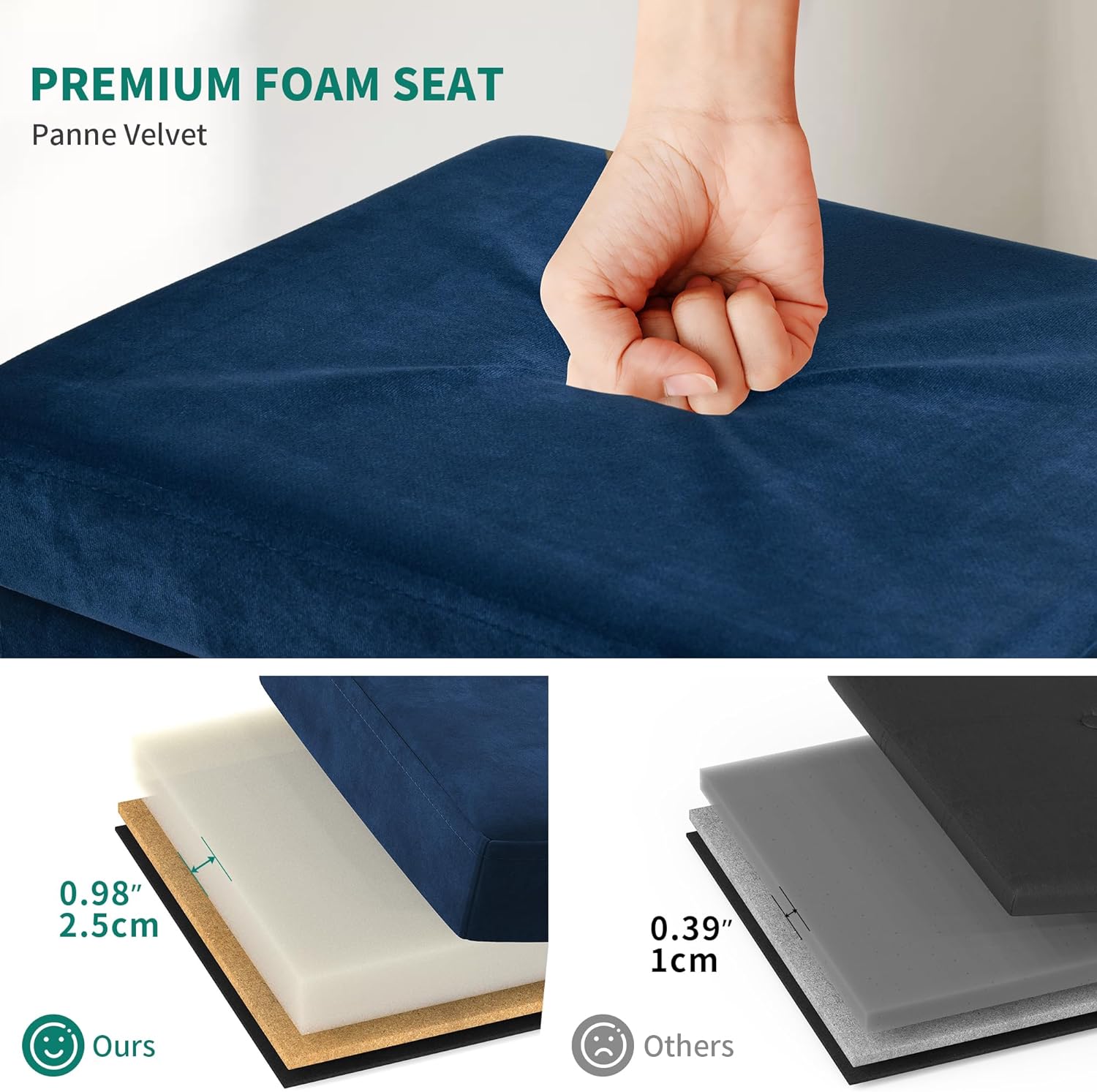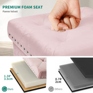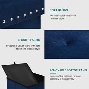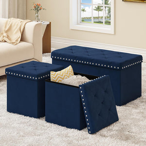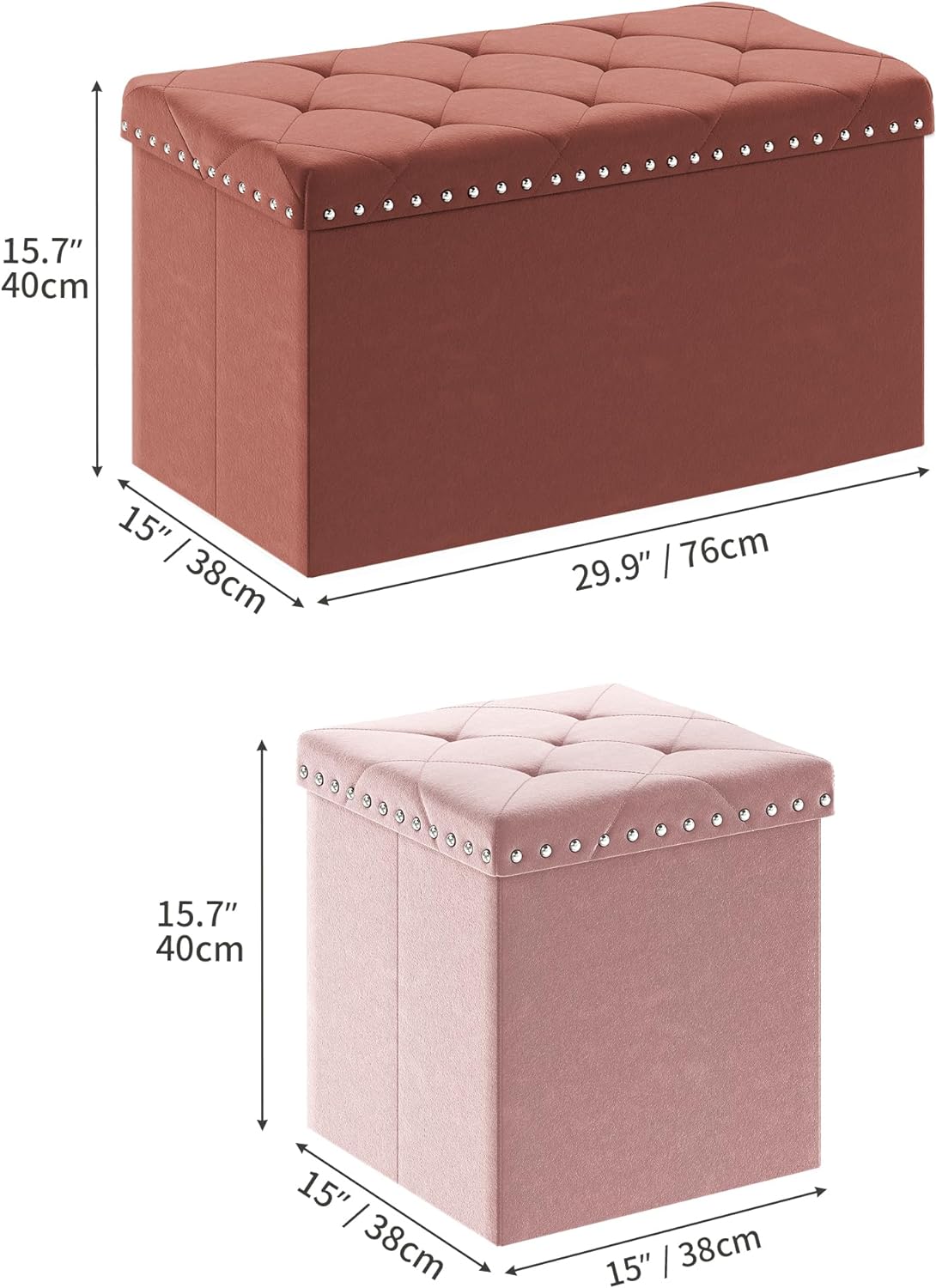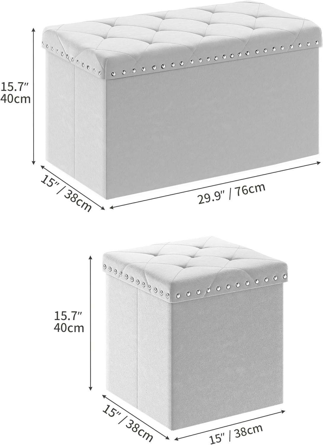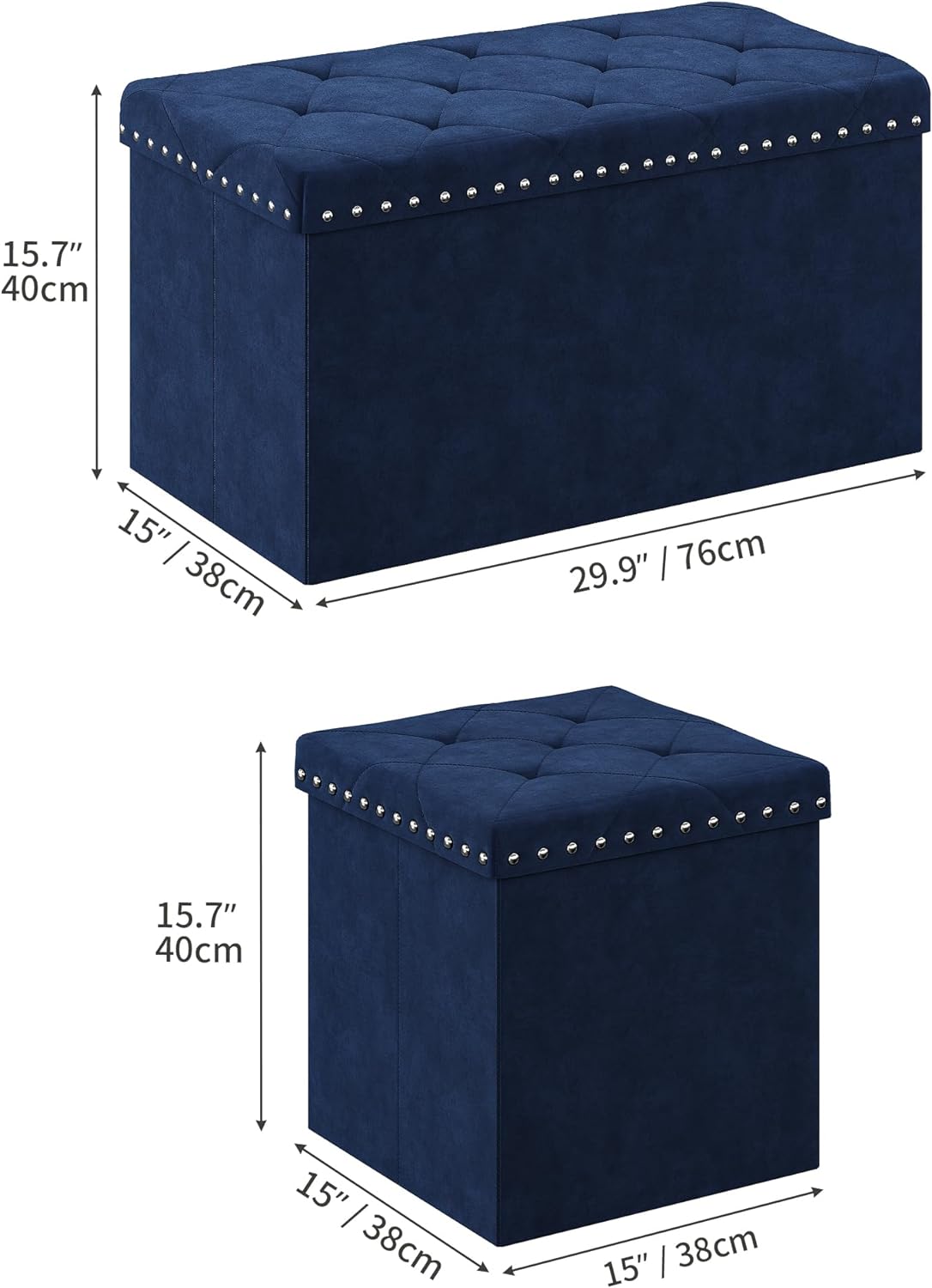 - 3PC VELVET STORAGE BENCH WITH OTTOMAN SETS: Each order comes with a velvet upholstered rectangular storage bench and 2 smaller storage ottomans with stylish rivet designs. This set of 3 storage bench with ottomans provides you with spacious storage and extra seat in your living room, bedroom, dining room or window side.