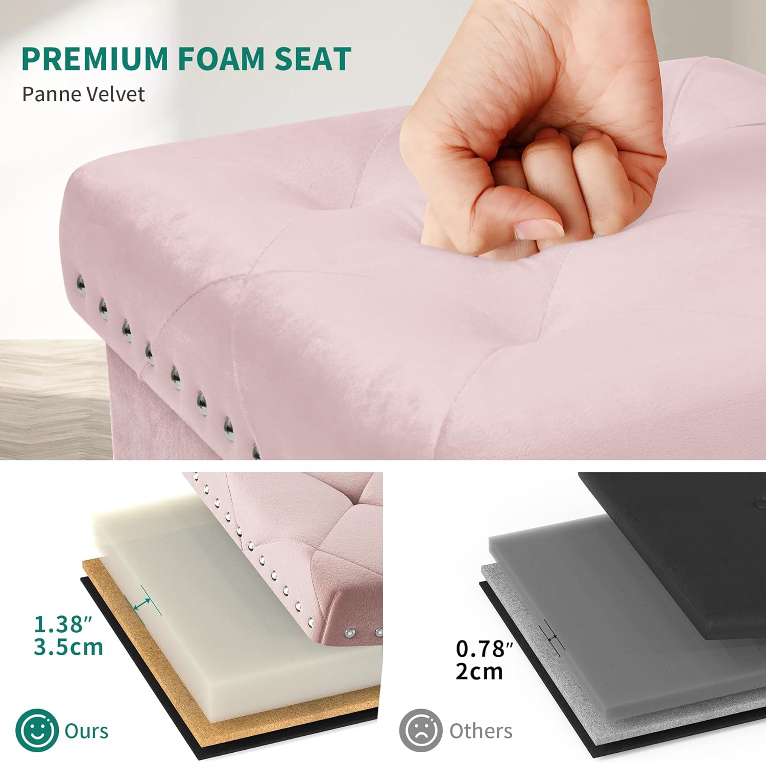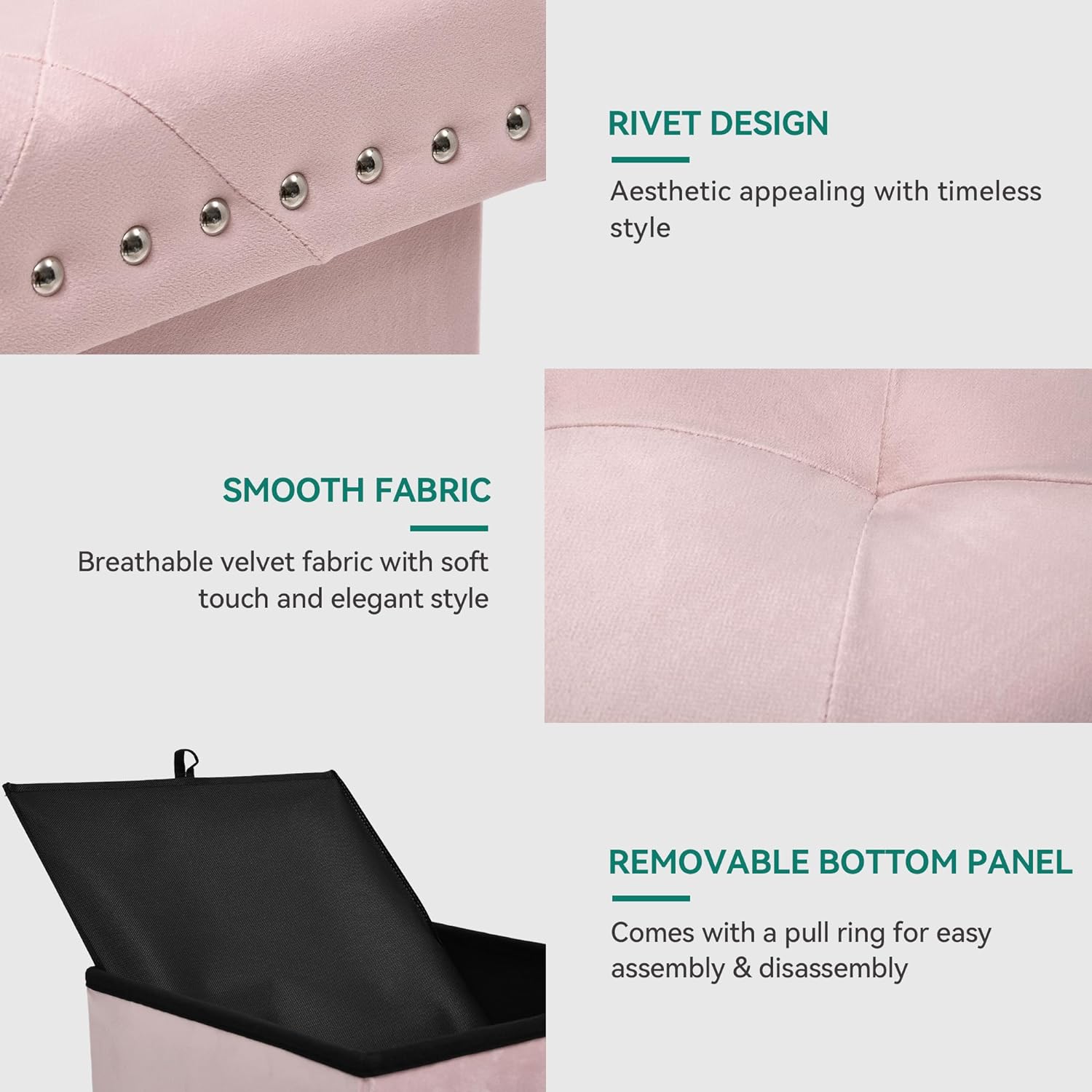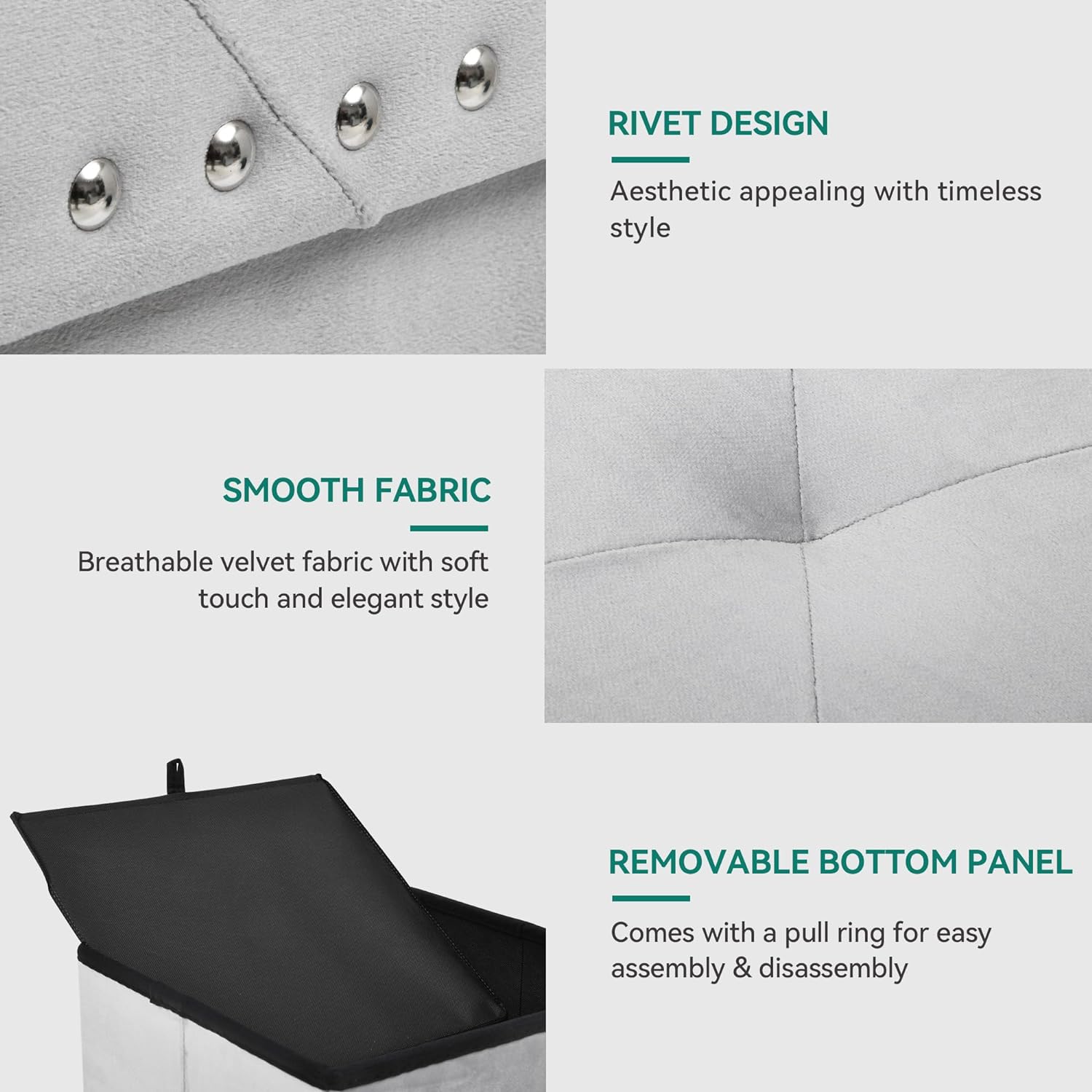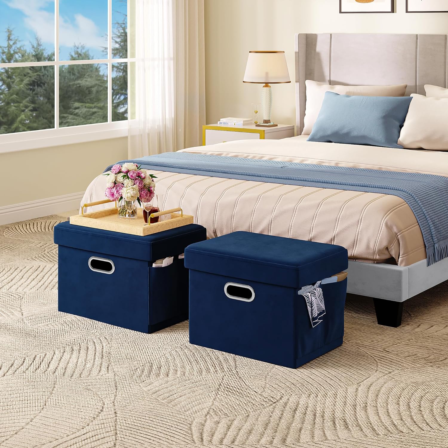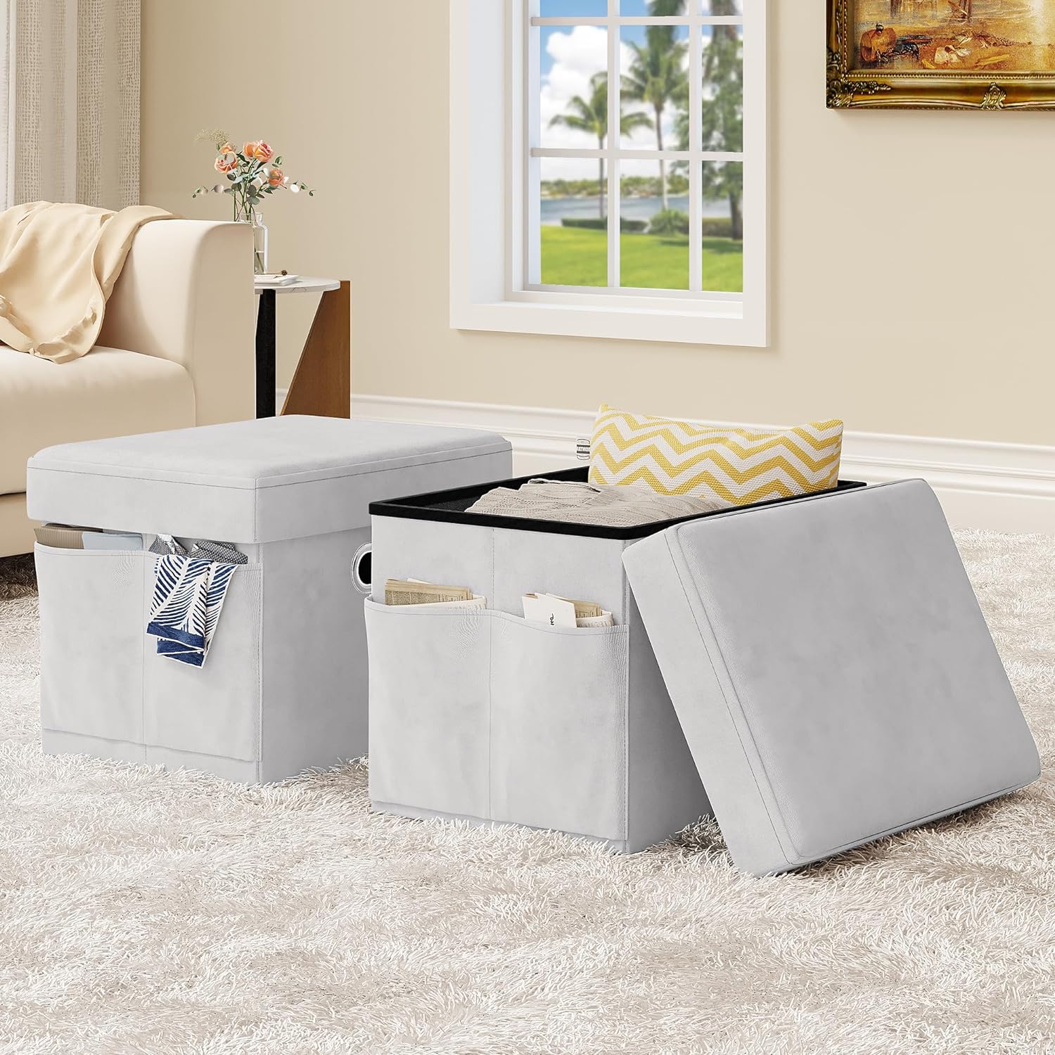 - STORAGE CAPACITY: Make your living space more organized with these revolutionary storage ottomans with ample storage space. The sturdy structure is spacious enough to store bedsheets/blankets /clothes /pillows, toys, books, and many other items.