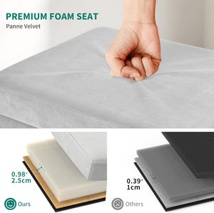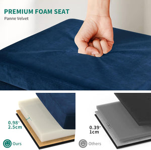 - PREMIUM MATERIAL AND DURABLITY: Use of premium velvet fabric provides it a very classy look and adds to your room’s cozy atmosphere, also 3.5 cms thickened sponge padding gives great seating comfort, and the use of sturdy medium-density Fiberboard (MDF) gives it enough strength to bear weight.