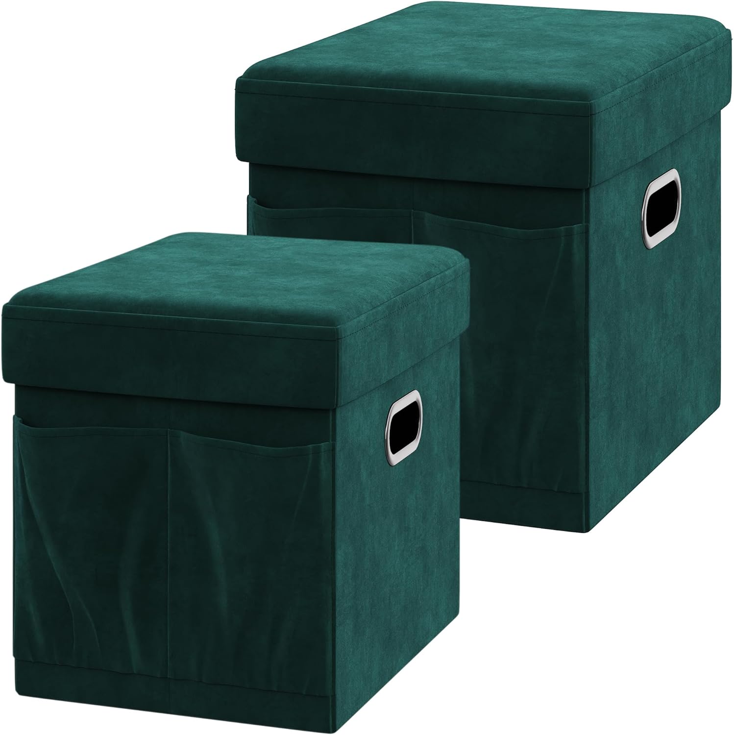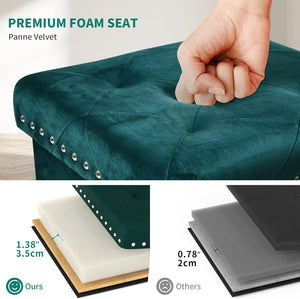 YITAHOME Velvet Tufted Storage Ottoman Bench with Stylish Rivets,for Bedroom Living Room Dressing Room for Multipurpose use (Set of 3, Green)