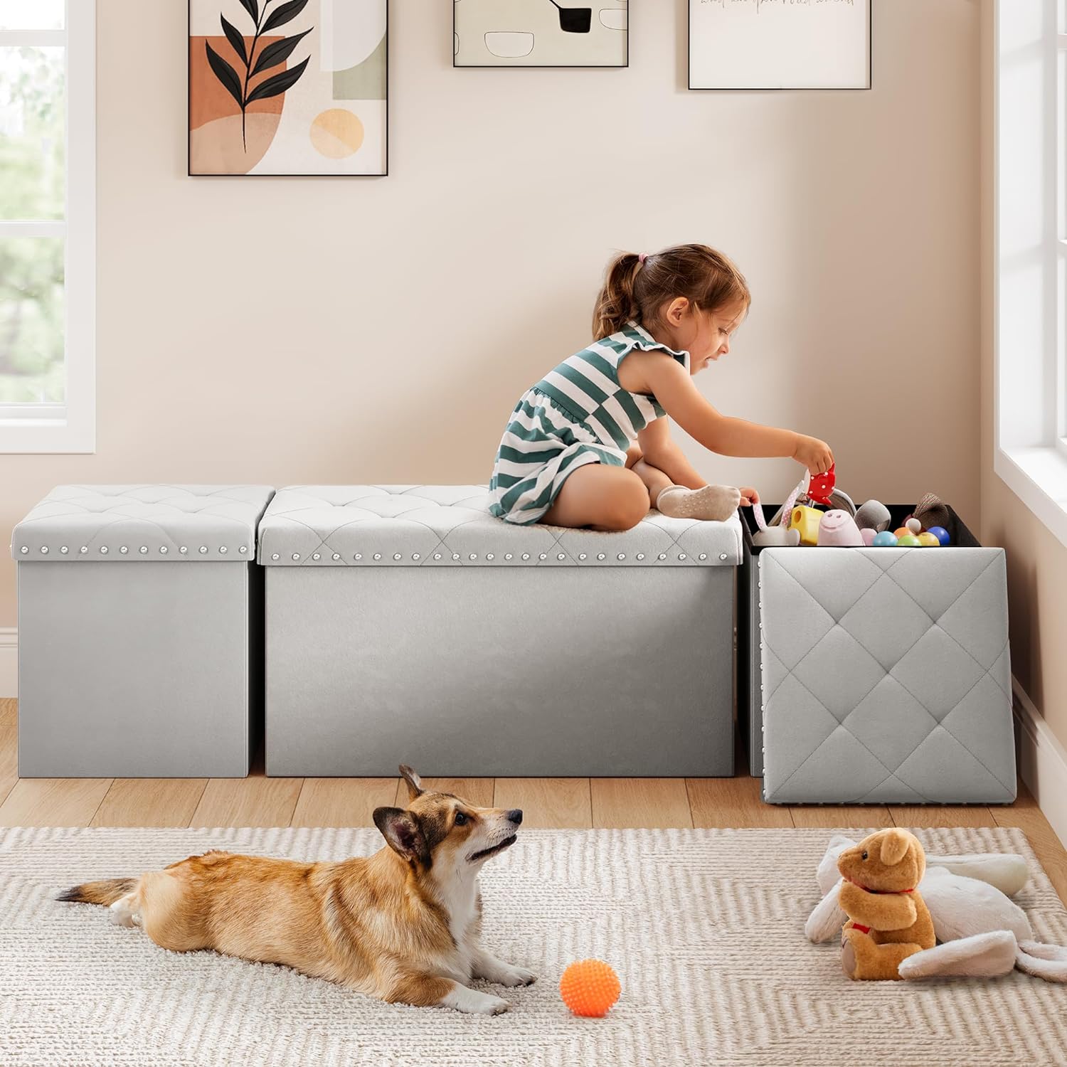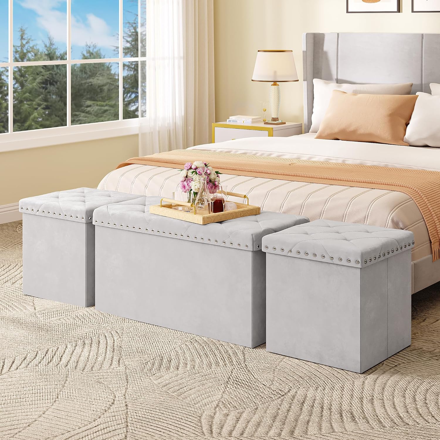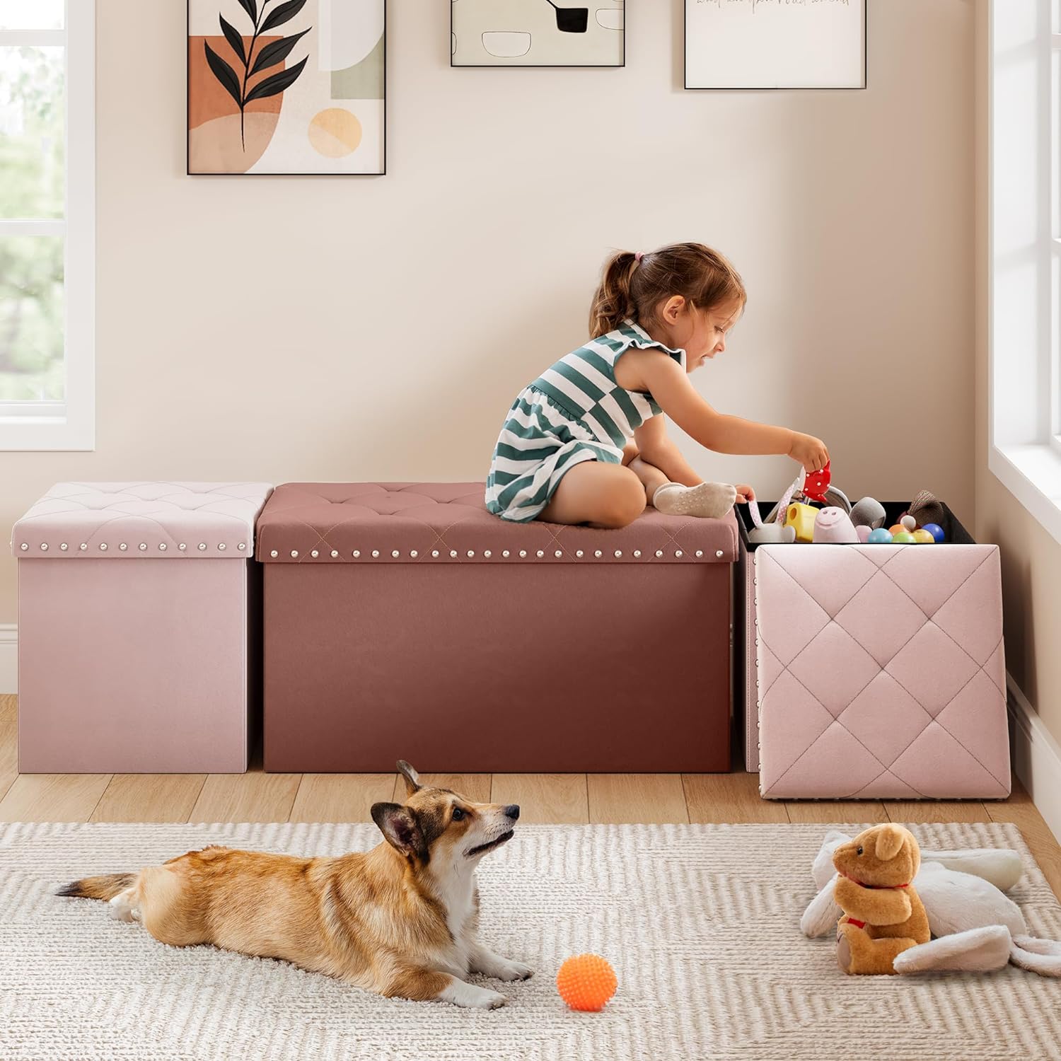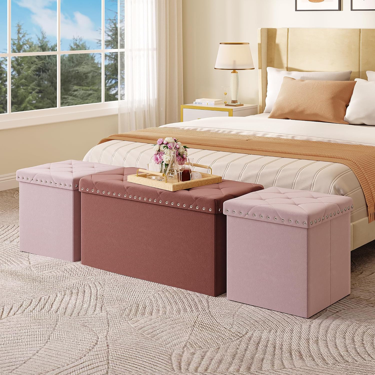 - MULTIFUNCTIONAL: These 3 PC storage ottomans are versatile and can be used to sit on, footrests, bed benches, toy storage chests, window benches, shoe benches, etc.