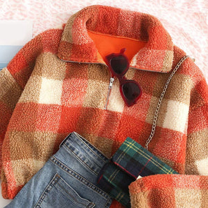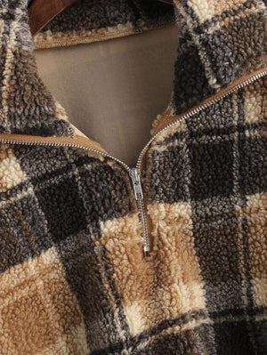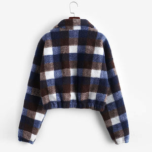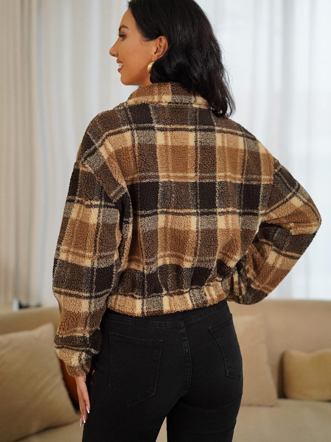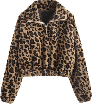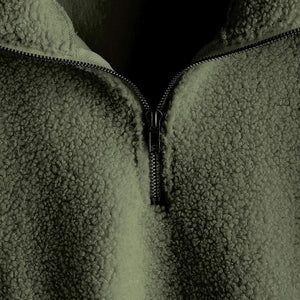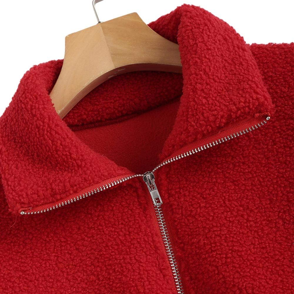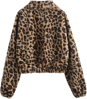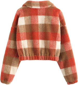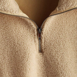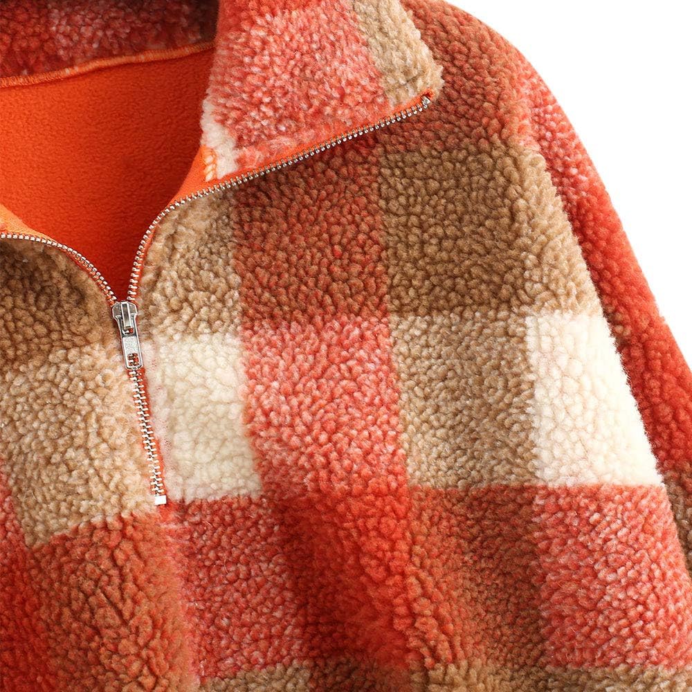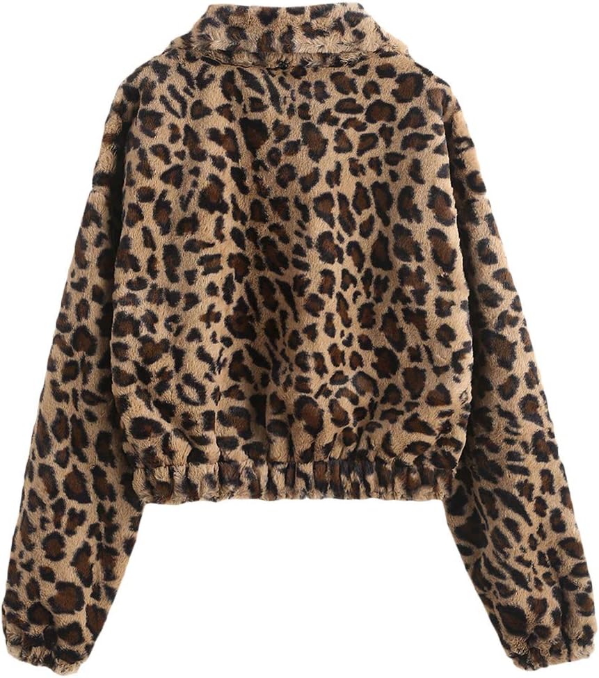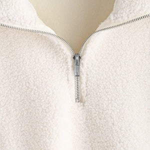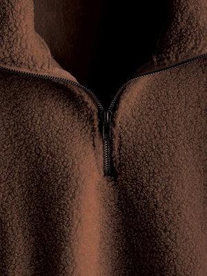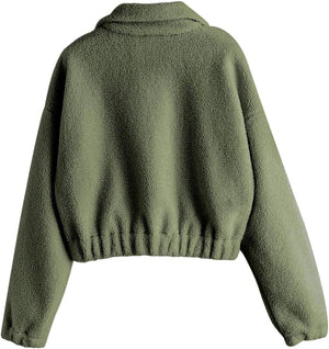 ZAFUL Women's Fashion Long Sleeve Lapel Half Zip Plain Faux Fur Sweatshirt Solid Color Crop Pullover Tops