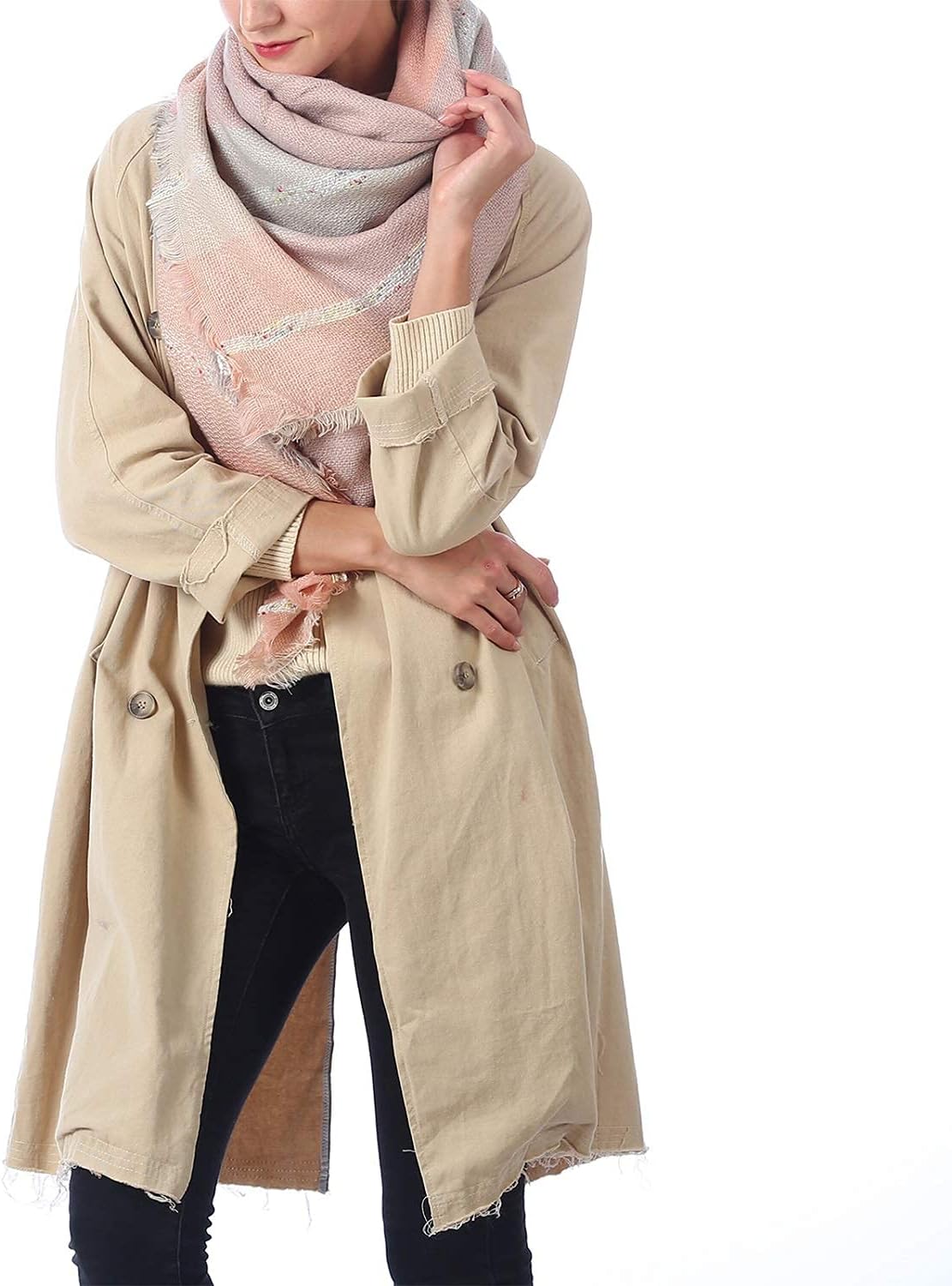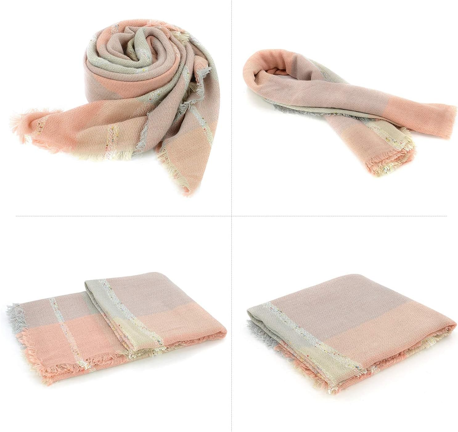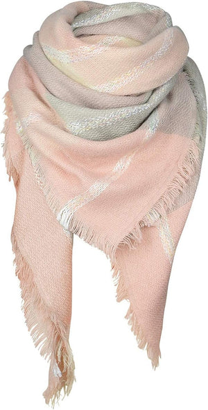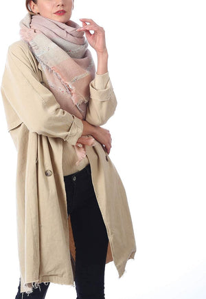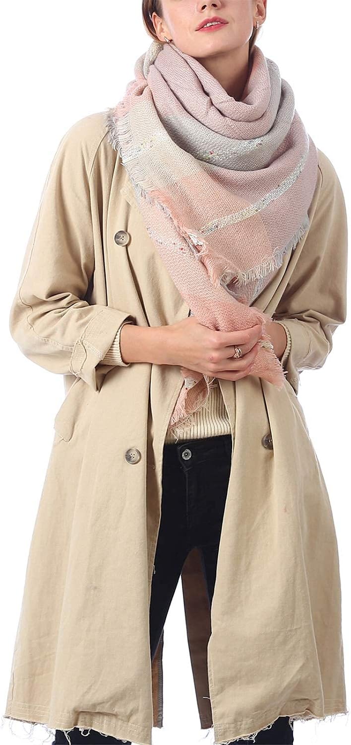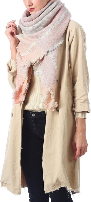 Zando Plaid Blanket Thick Winter Scarf Tartan Chunky Wrap Oversized Shawl Cape Scarves, T Light Pink Grey, One size