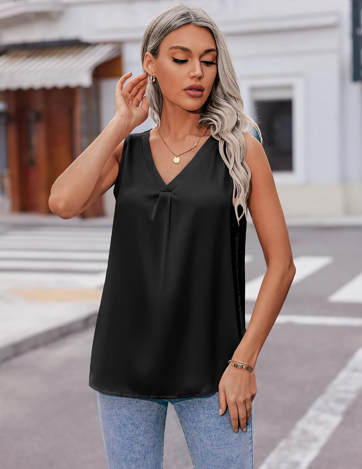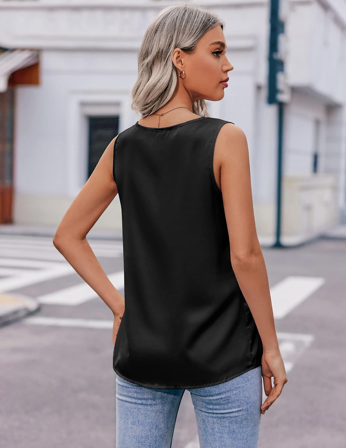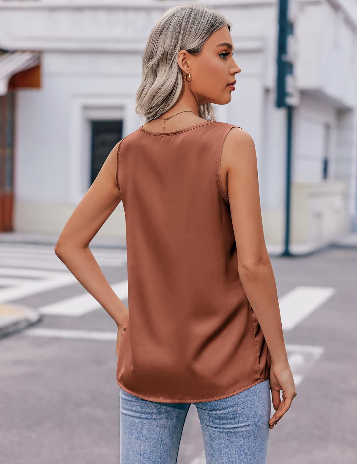 Zeagoo Womens 2023 Silk Satin Tank Tops V Neck Casual Cami Sleeveless Camisole Blouses Summer Basic Tank Shirt