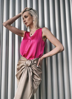 It is normal for there may be visual differences in the luster and color of silk tank top indoors and in sunlight.
