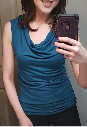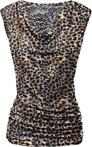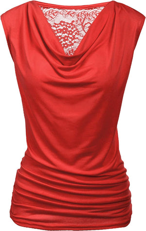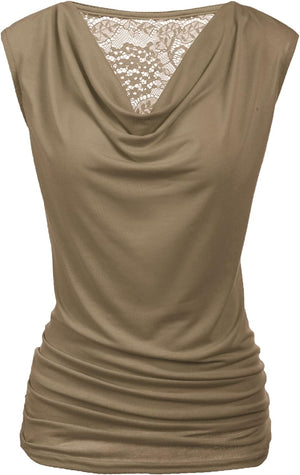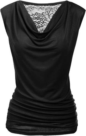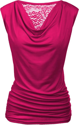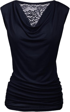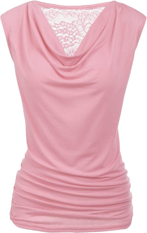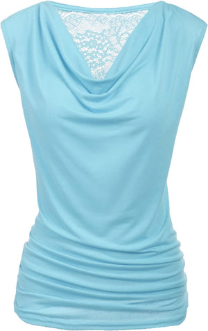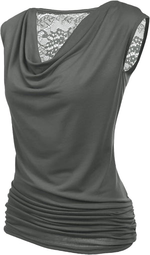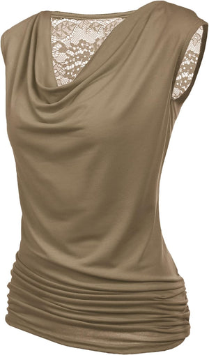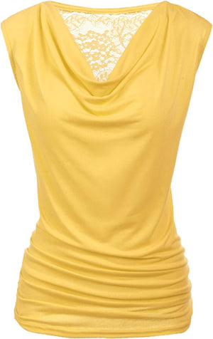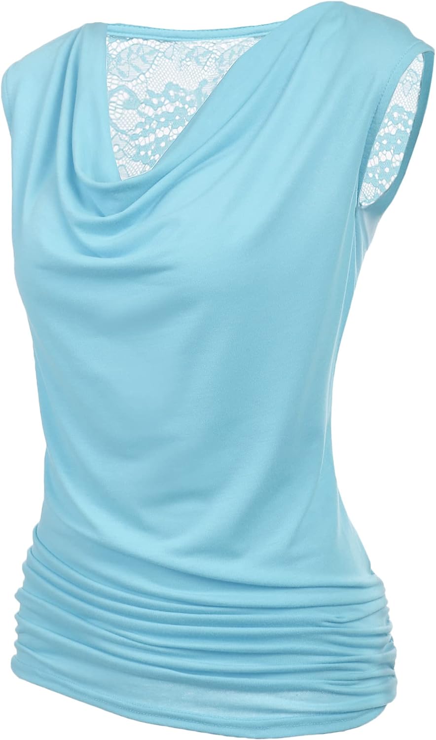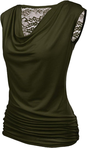Zeagoo Womens Ruched Cowl Neck Tank Tops Sleeveless Stretch Blouse with Side Shirring