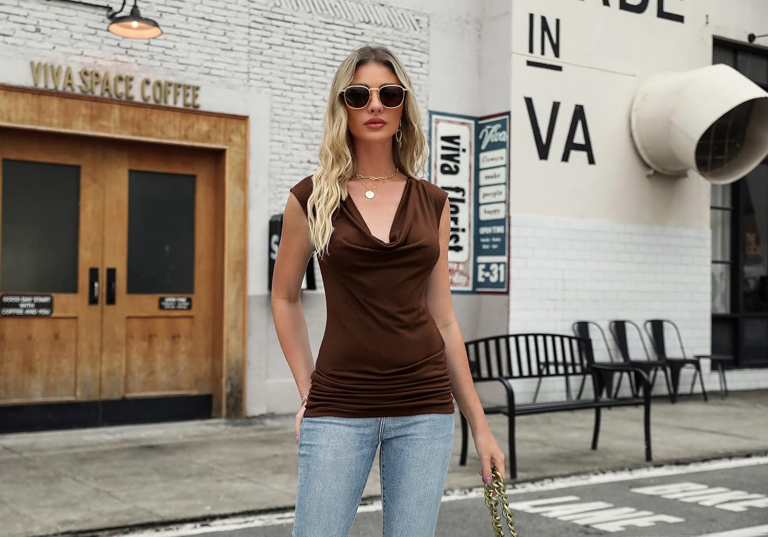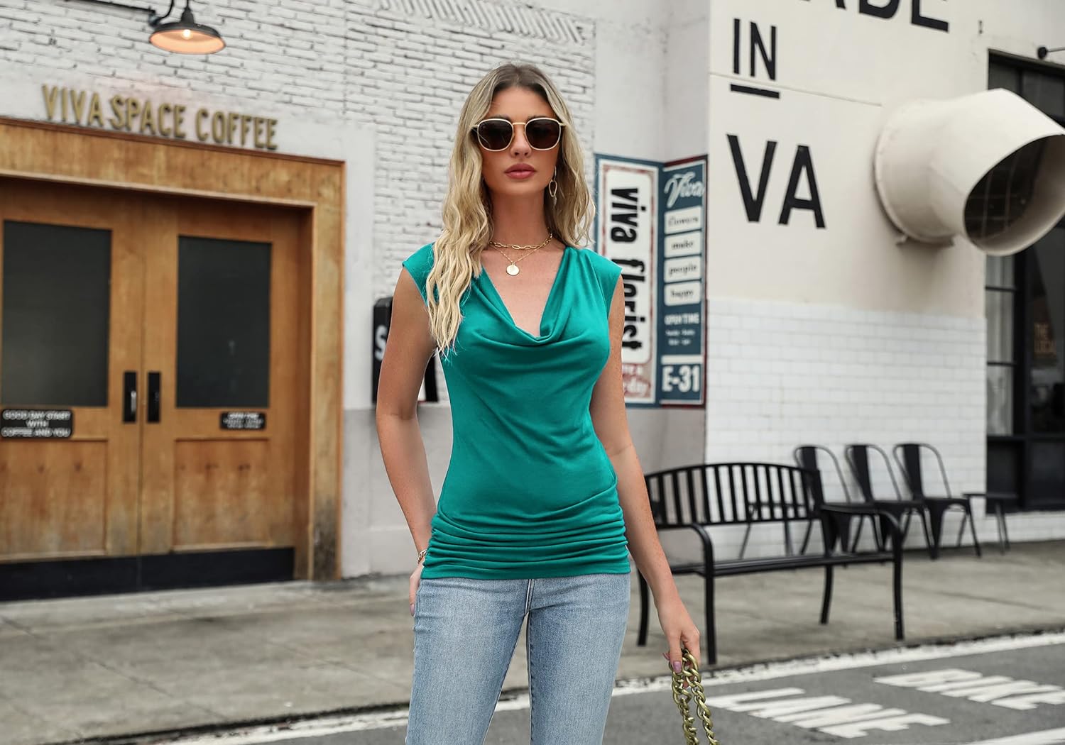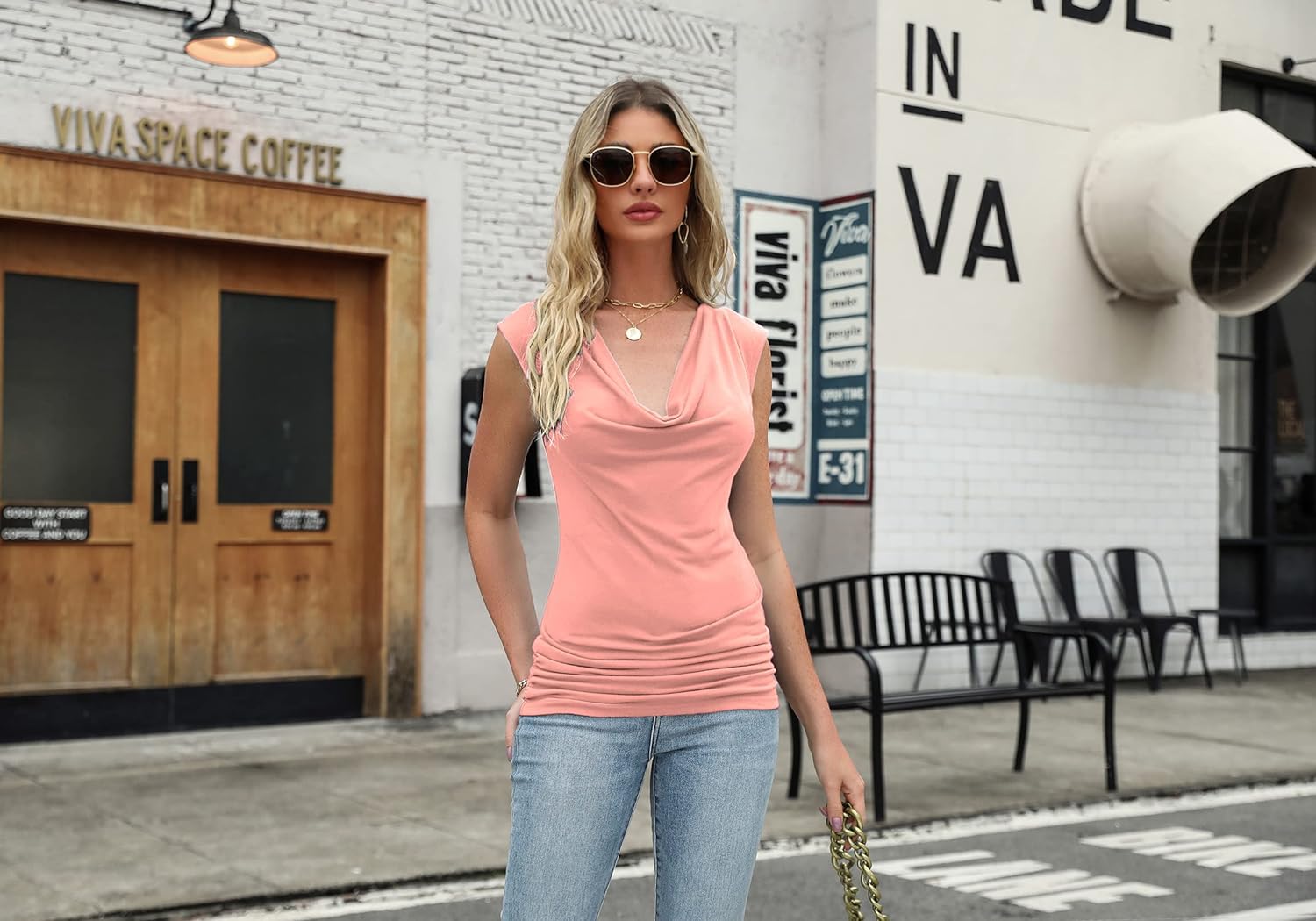 Zeagoo Womens Ruched Cowl Neck Tank Tops Sleeveless Stretch Blouse with Side Shirring