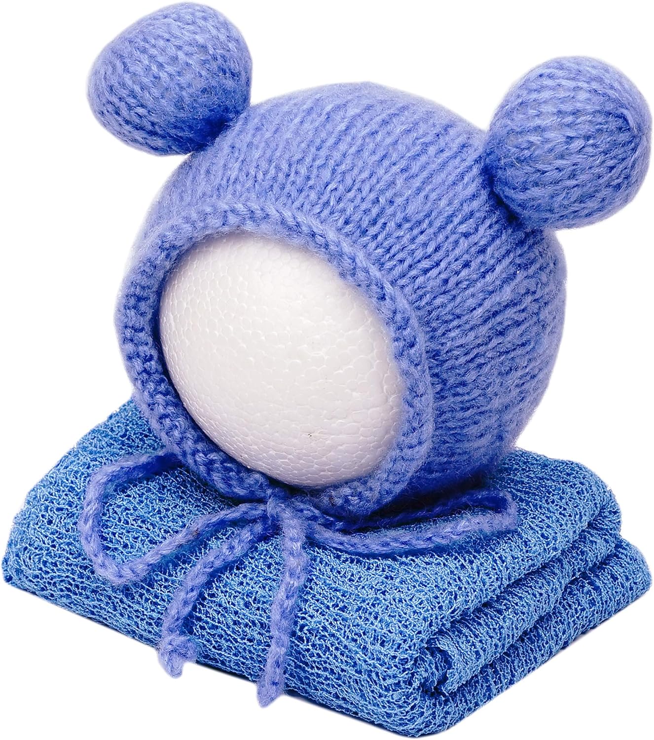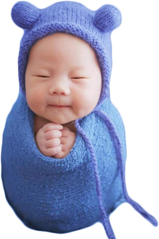 Zeroest Baby Photography Props Wrap Hat Newborn Photo Shoot Outfits Infant Photos Hats Blanket Set (Blue)