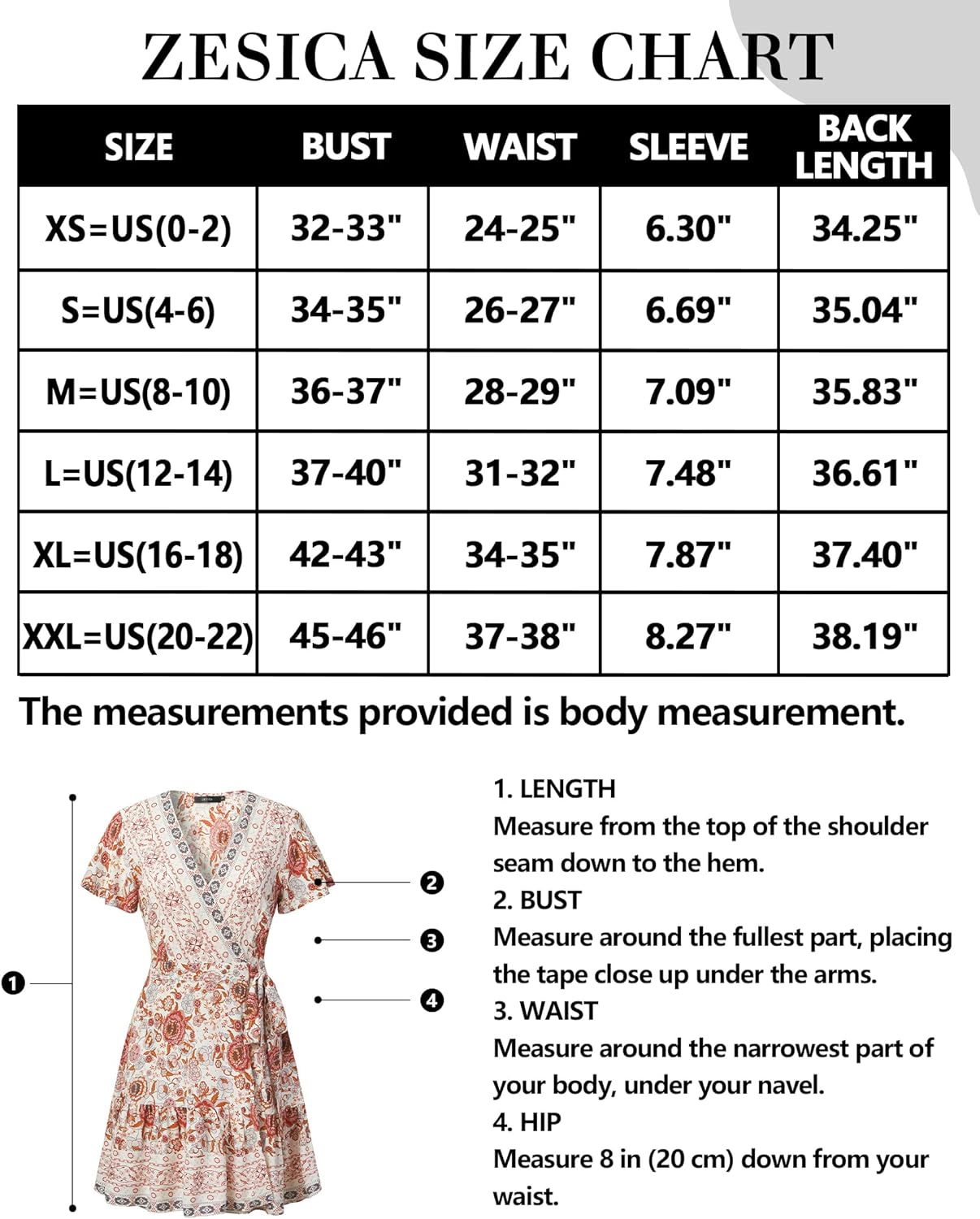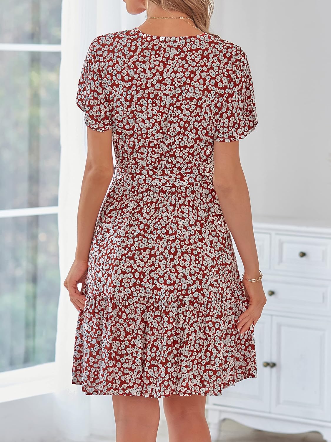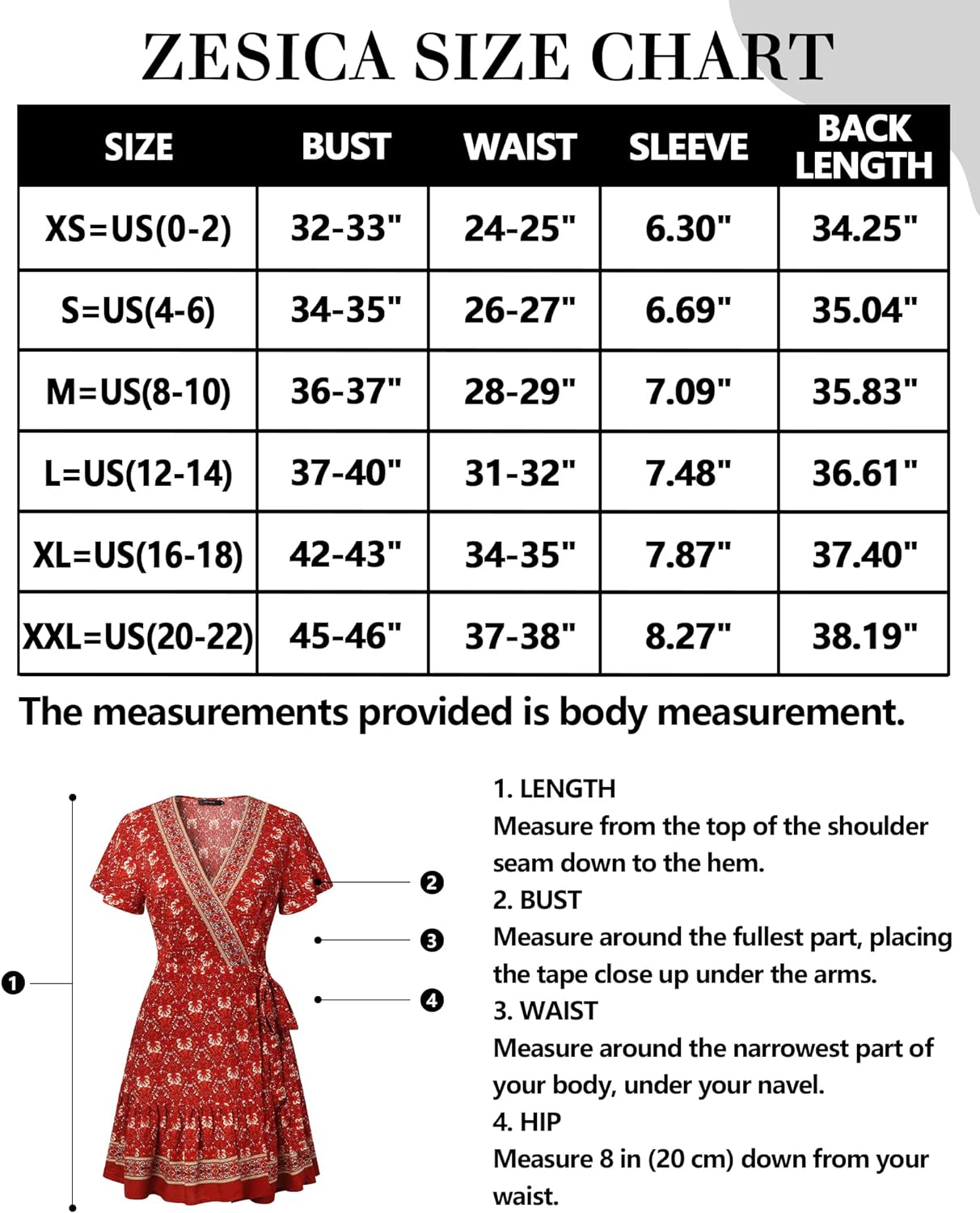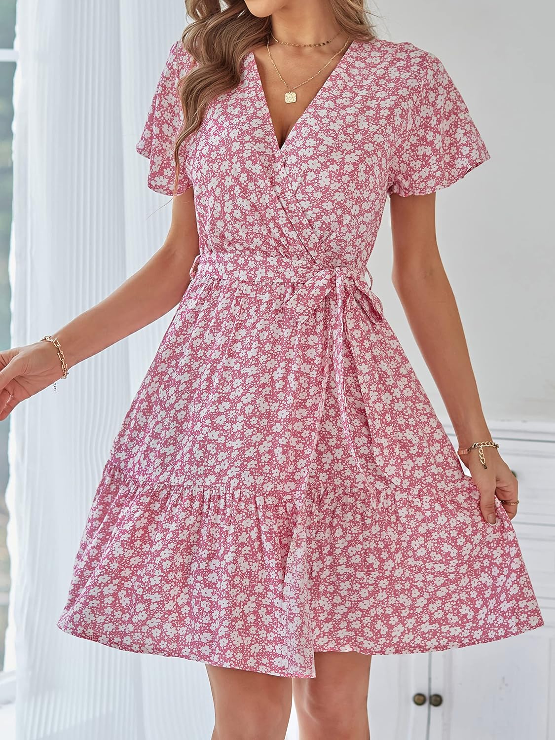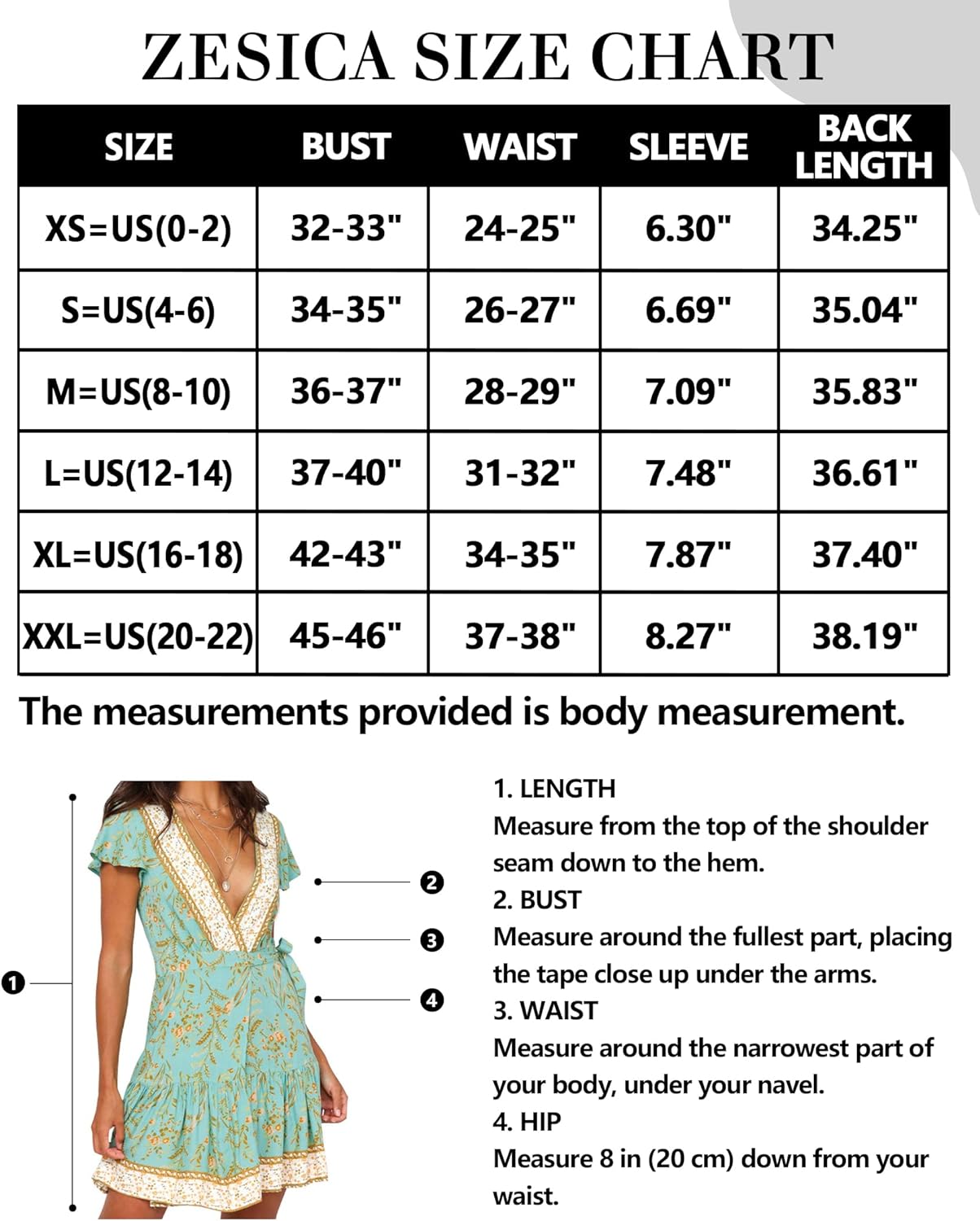 ZESICA Women’s Summer Wrap V Neck Bohemian Floral Print Ruffle Swing A Line Beach Mini Dress