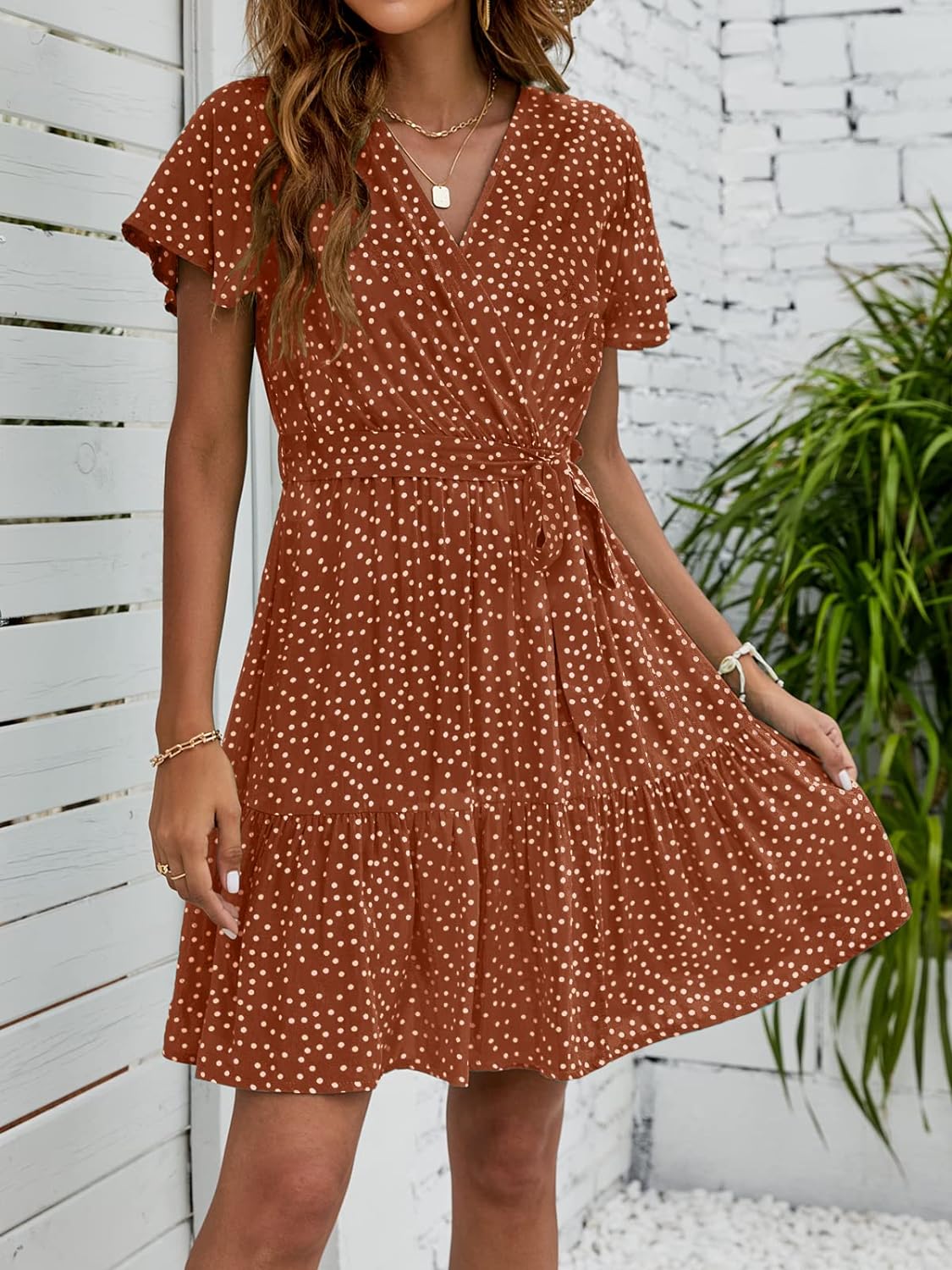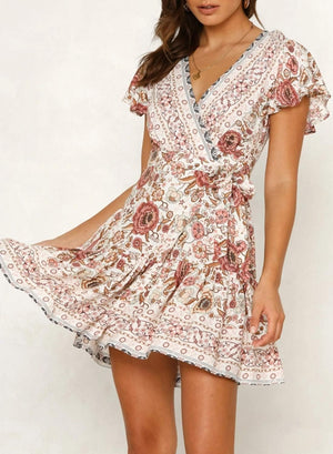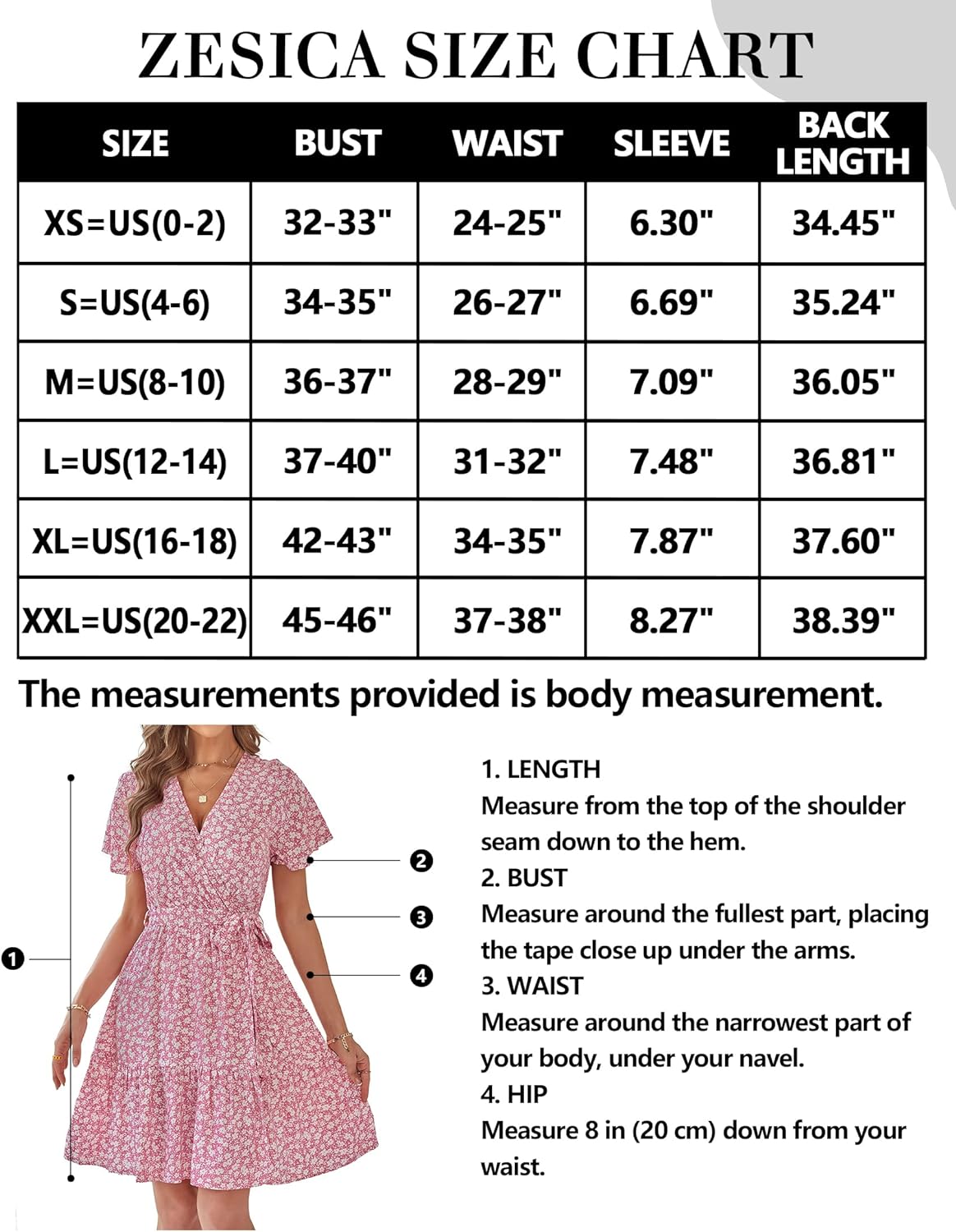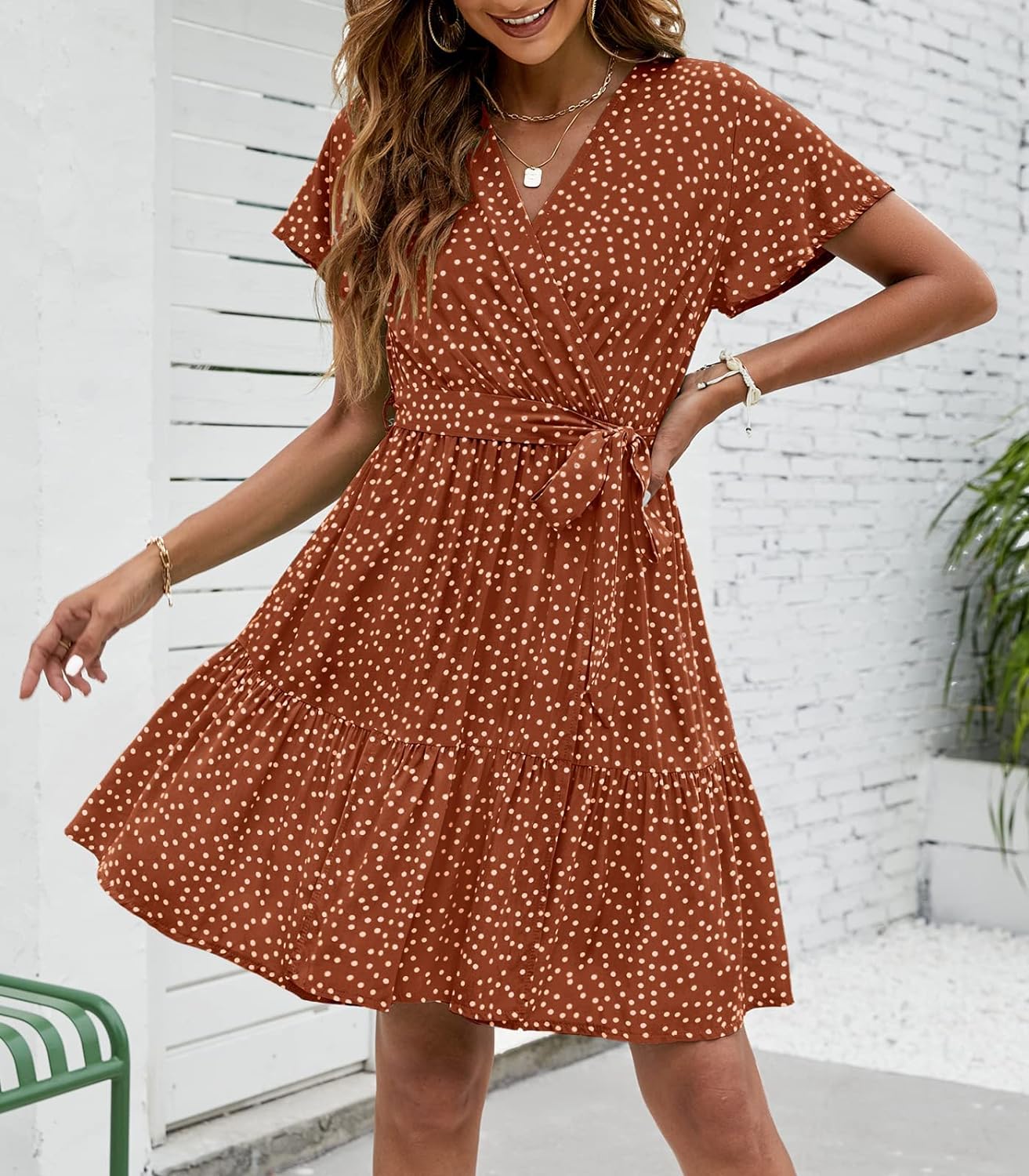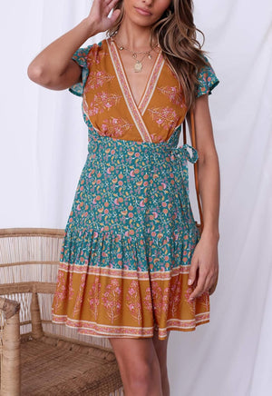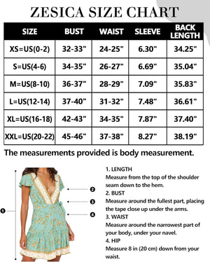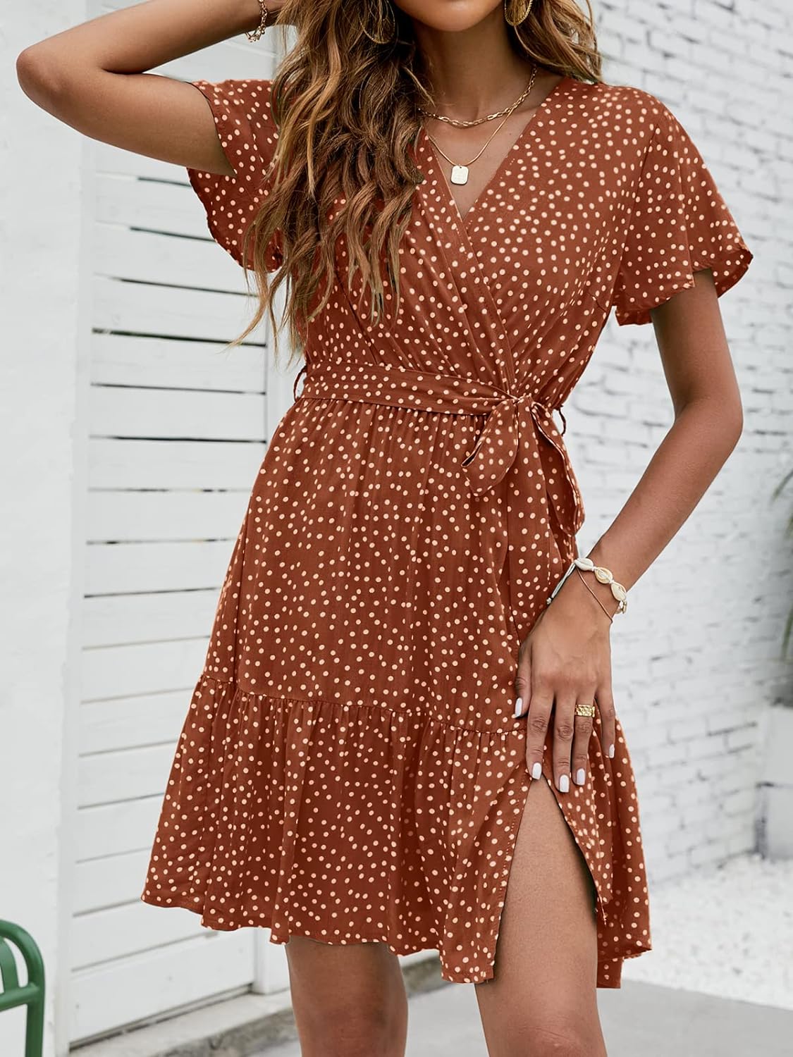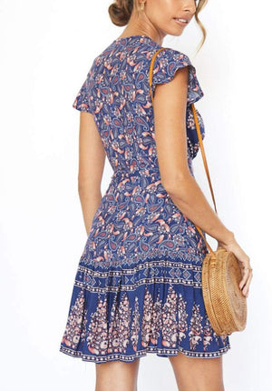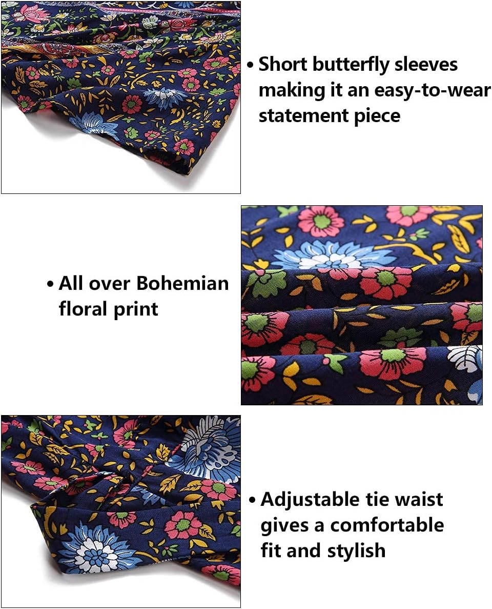ZESICA Women’s Summer Wrap V Neck Bohemian Floral Print Ruffle Swing A Line Beach Mini Dress