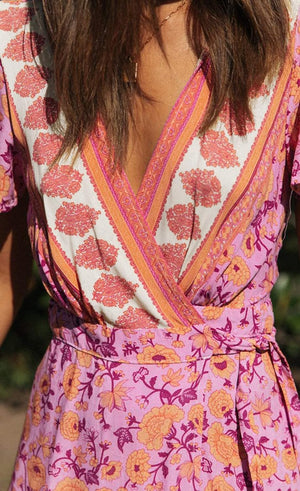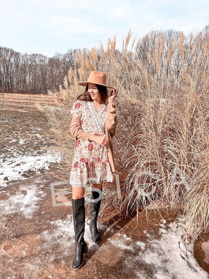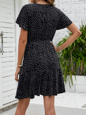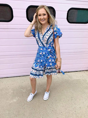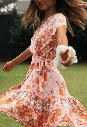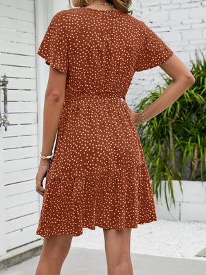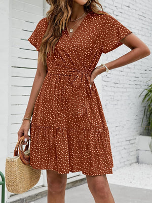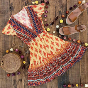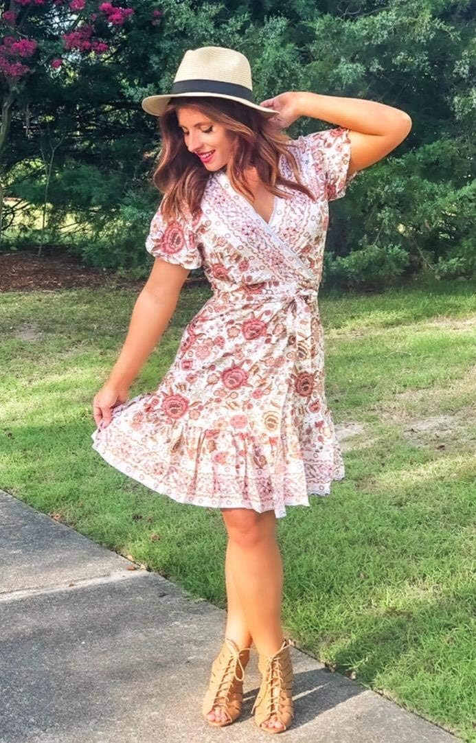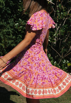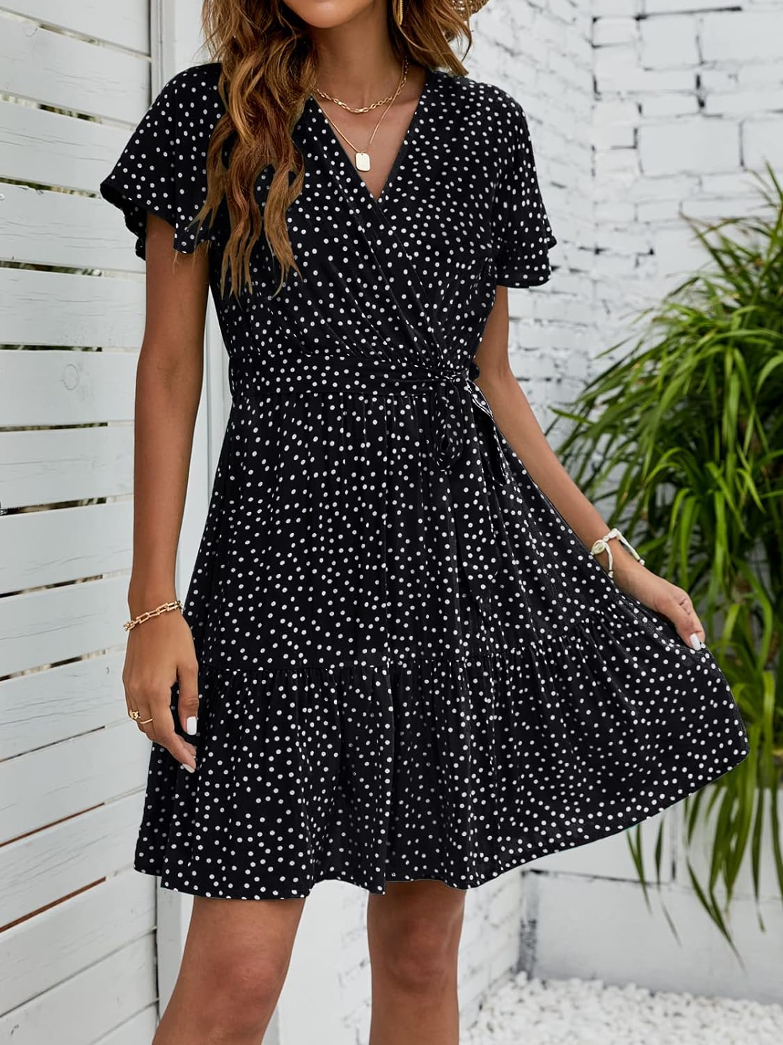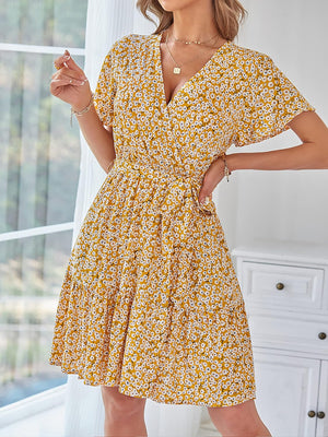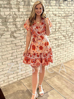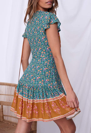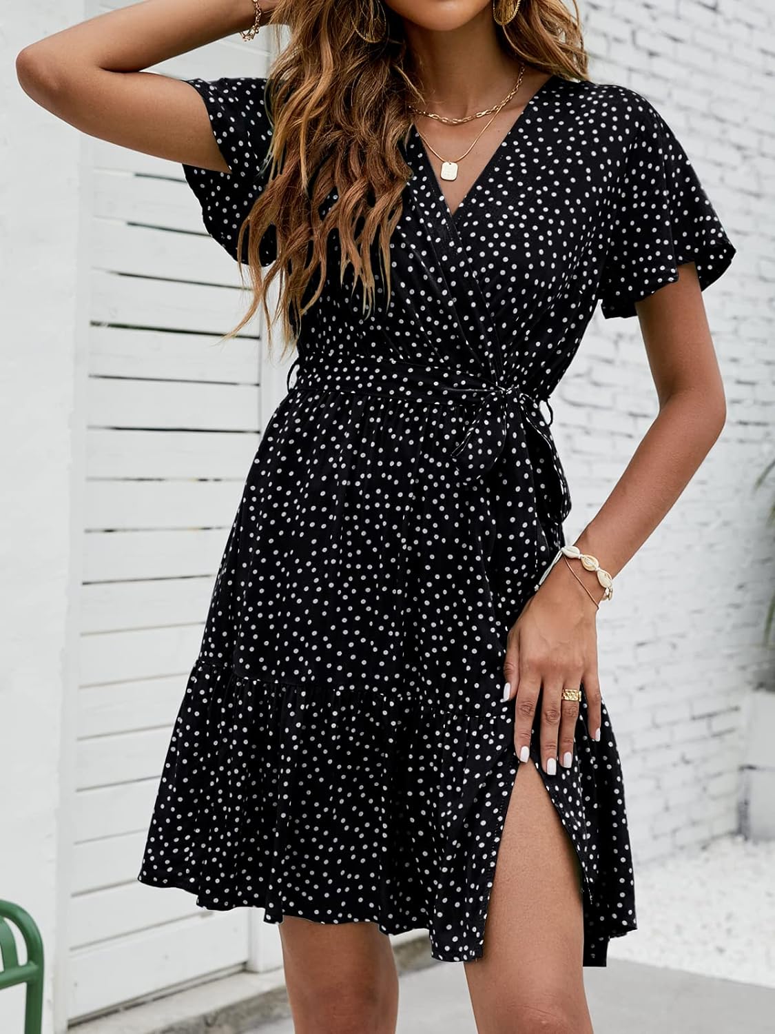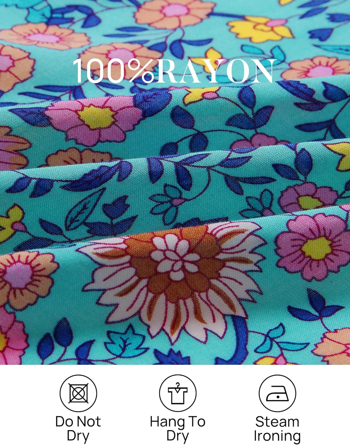 ZESICA Women’s Summer Wrap V Neck Bohemian Floral Print Ruffle Swing A Line Beach Mini Dress